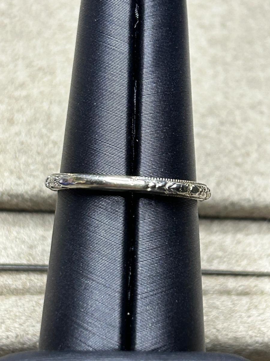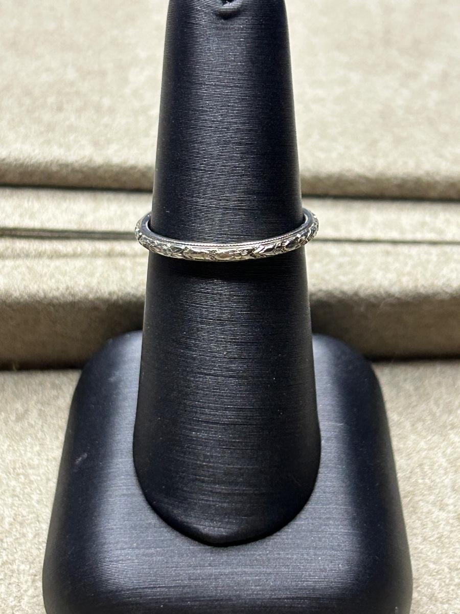 Vintage stamped 18k white gold antiqued band.