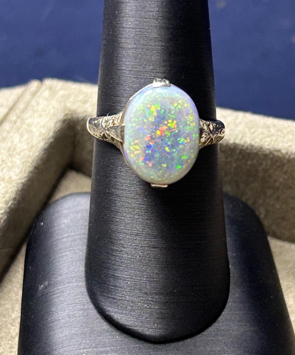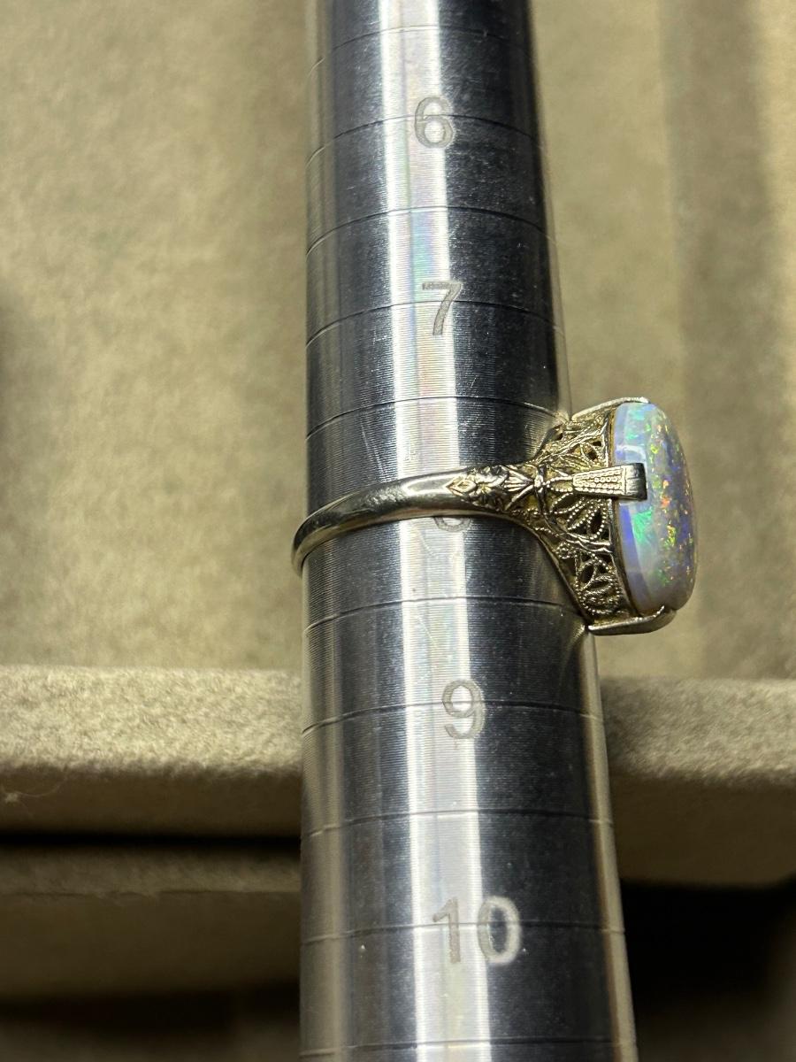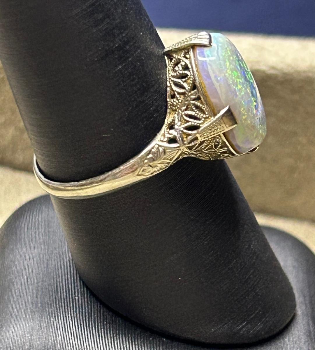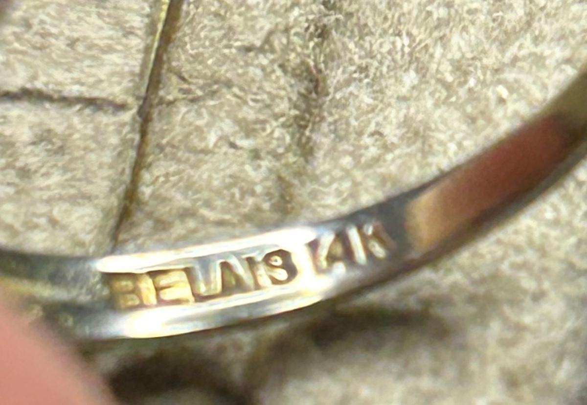 Stamped Belais 14K , the opal is called a triplet & cracked underneath, still very very gorgeous & detailed.