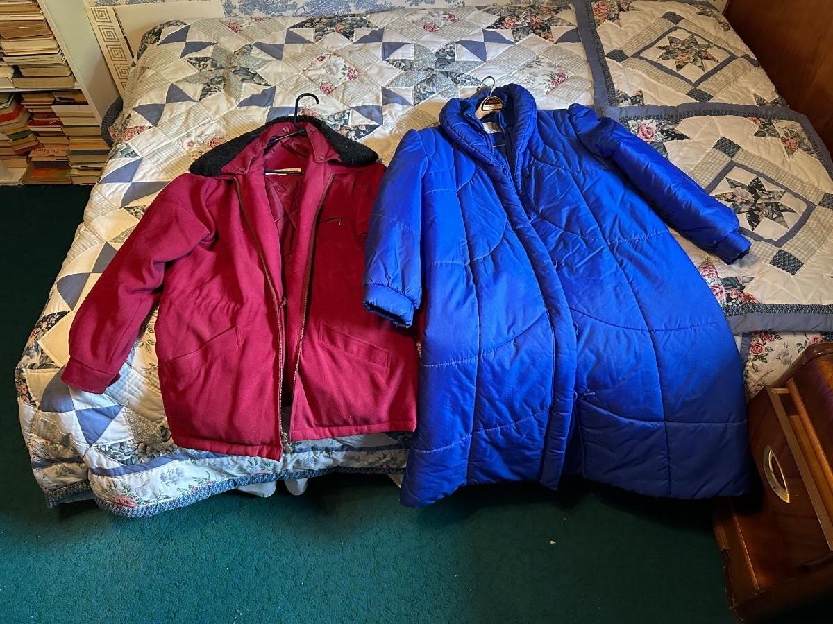 Blue coat is a Medium, Red Coat is a Large