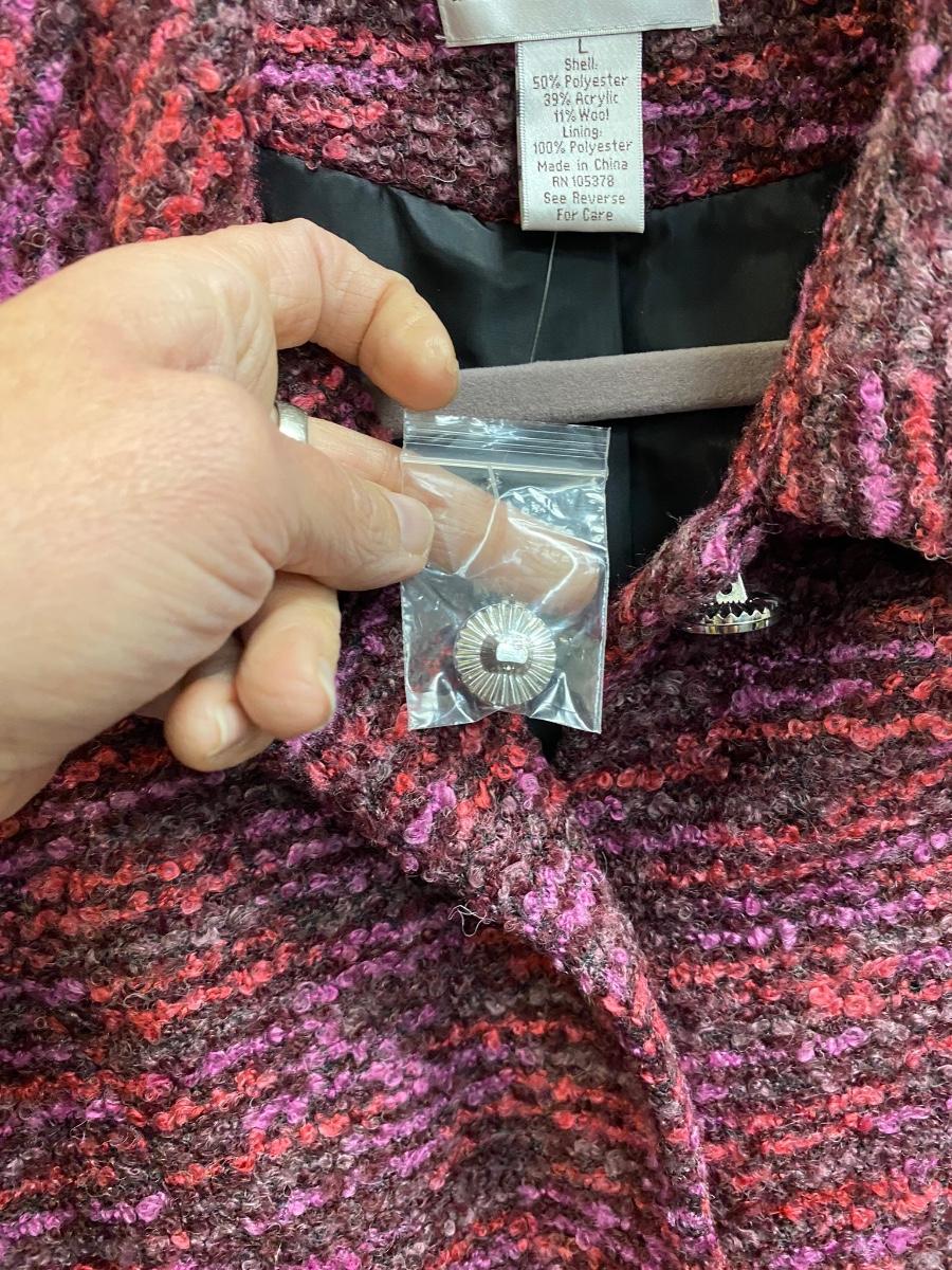 Ladies Womans Draper's & Damon's Purple Fuchsia Business Office Attire Jacket Coat. Good condition. Bottom button needs to be restitched, but it is included plus an extra button. Size Large.