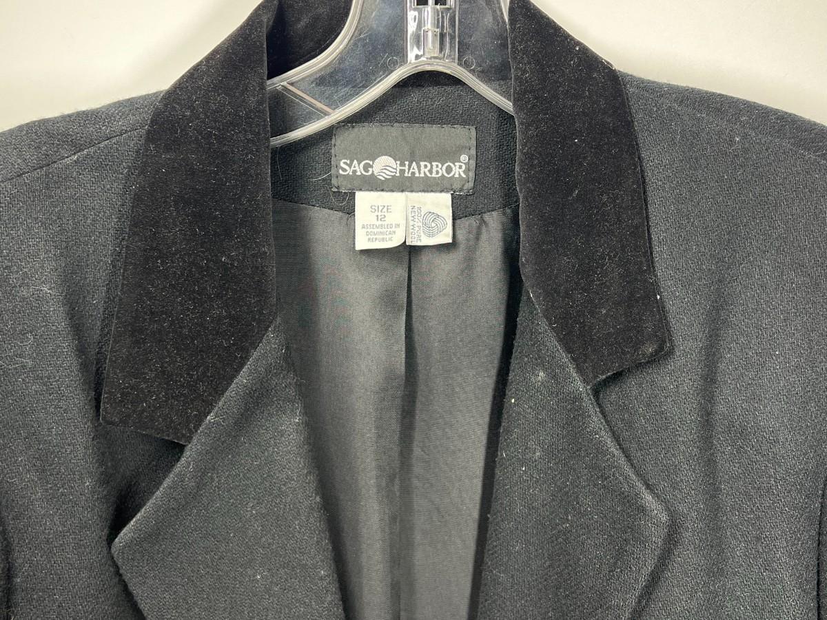 Ladies Womans Sag Harbor Black 100% Wool Blazer Coat Suit Business Jacket. Good previously worn condition. Size 12.