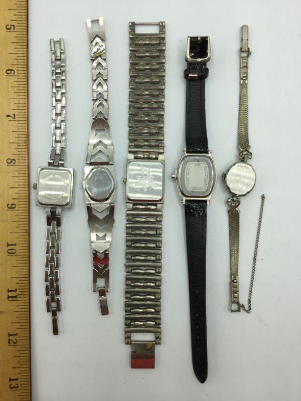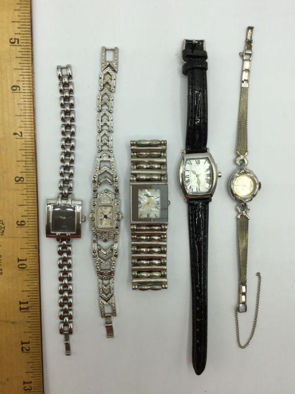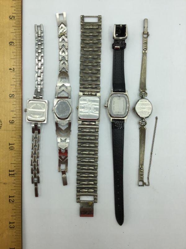 5 ladies wristwatches. Currently not running, could just need new batteries. From everyday to night out, good selection of styles. Previously owned.