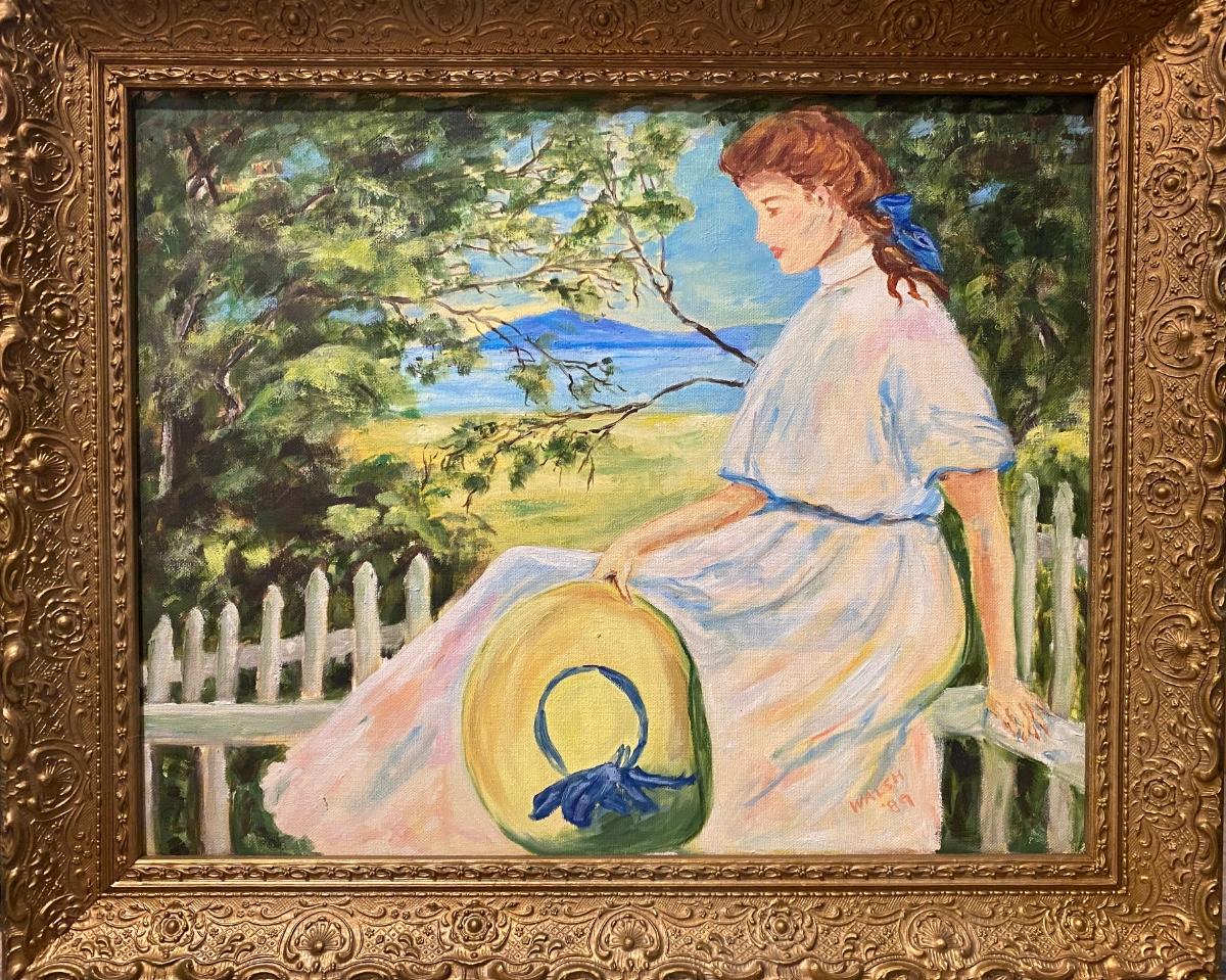 1989 Oil on Canvas, Lady Art by Dorothy Walsh - 23.5" W x 19.5" T. Signed and Framed