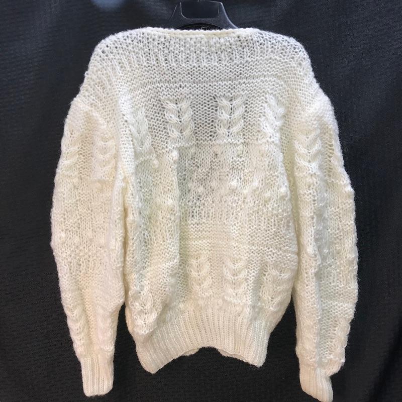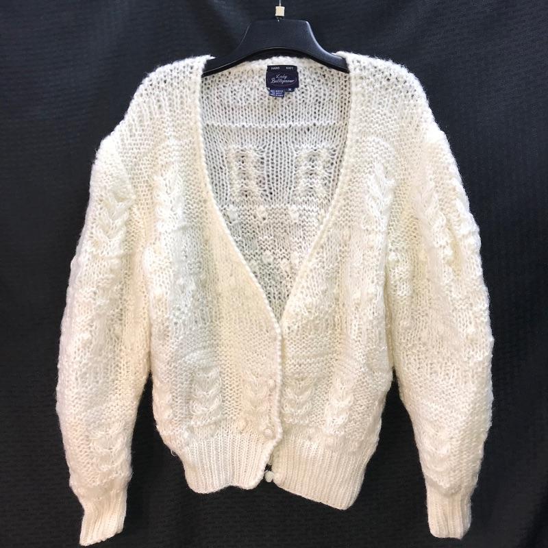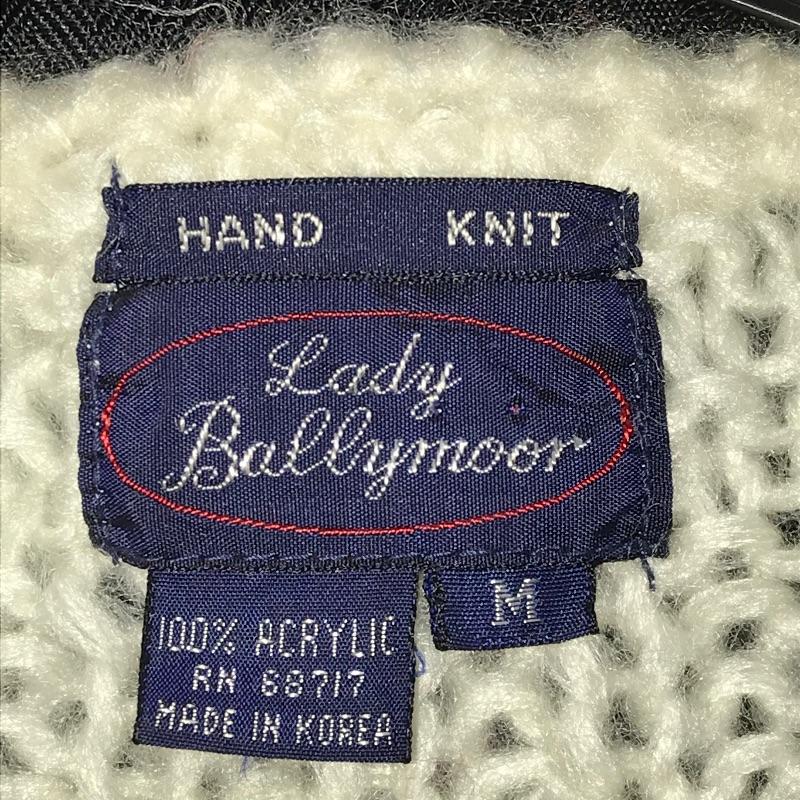 A ladies knitted cardigan in 100% acrylic made by Lady Ballymoor. No visible holes, or rips; see pictures.