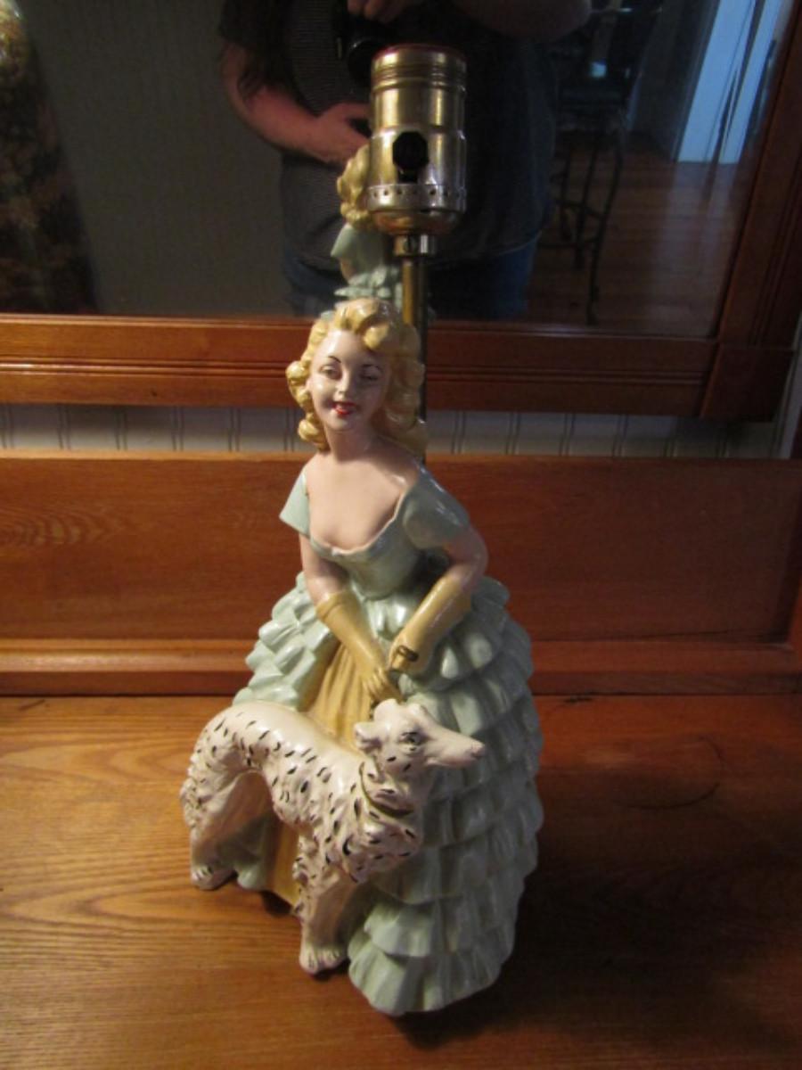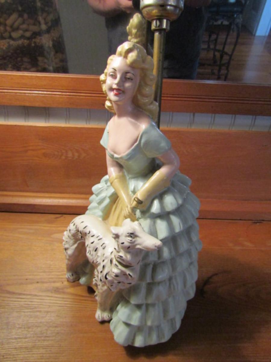Lady with Dog Vintage Lamp Base- Needs to be Rewired and Shade
