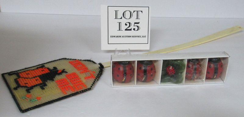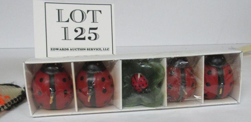 Ladybug Lot, Box of Unused Candles ,and Fly Swatter