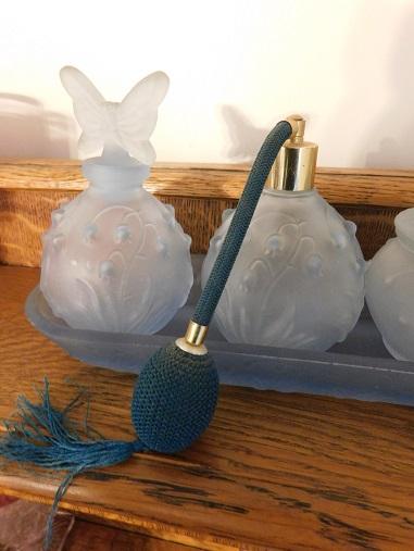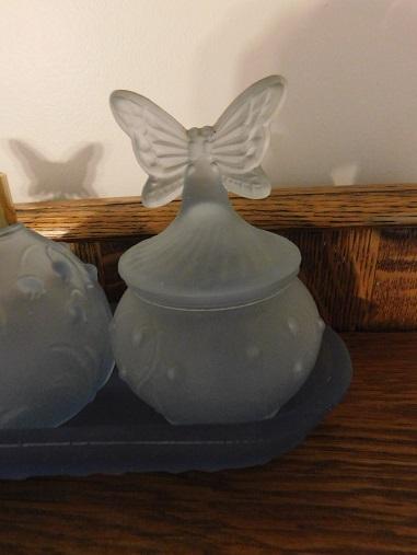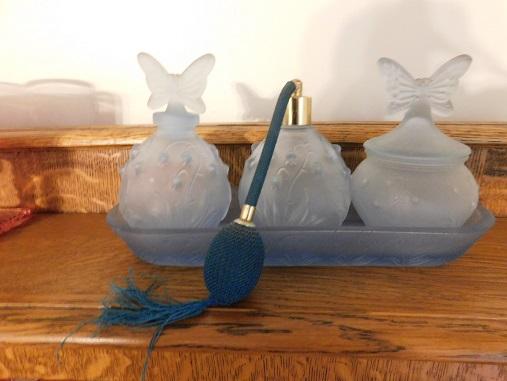 Lady's Atomizer Perfume Bottle and Butterfly Lid Vanity Jar Set