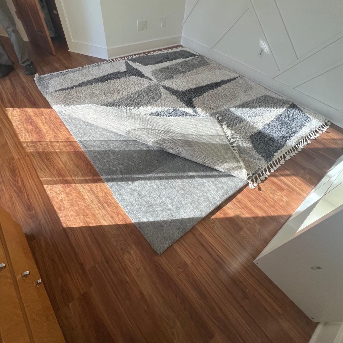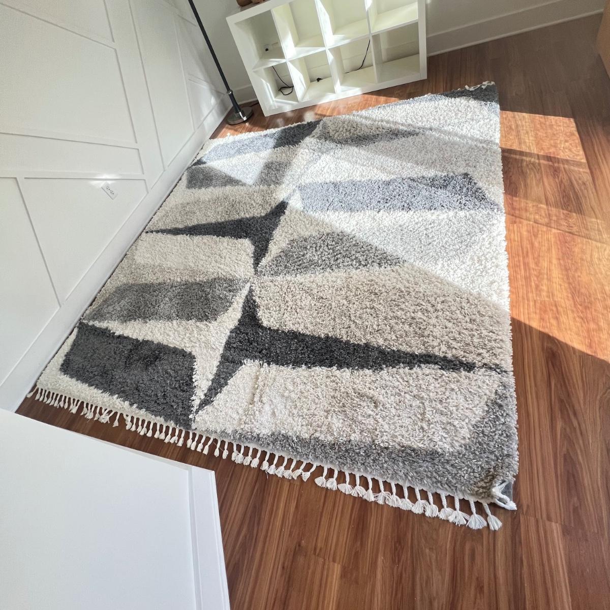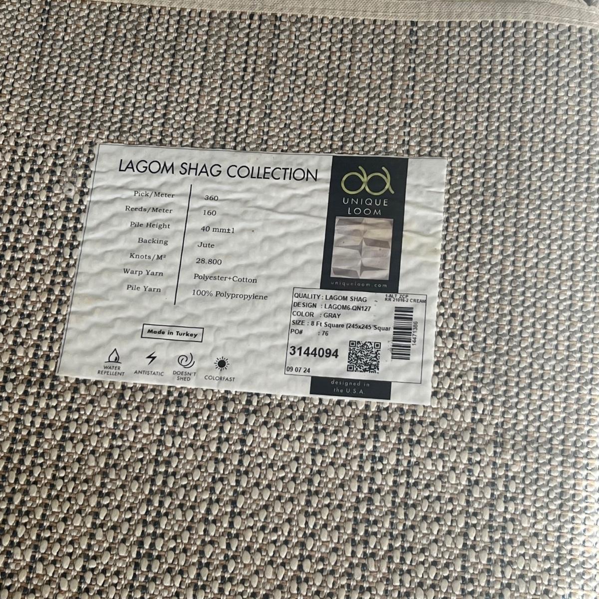 This 8’ square modern gray rug is from the Lagom Shag Collection. Any shadows in images are from the window light.