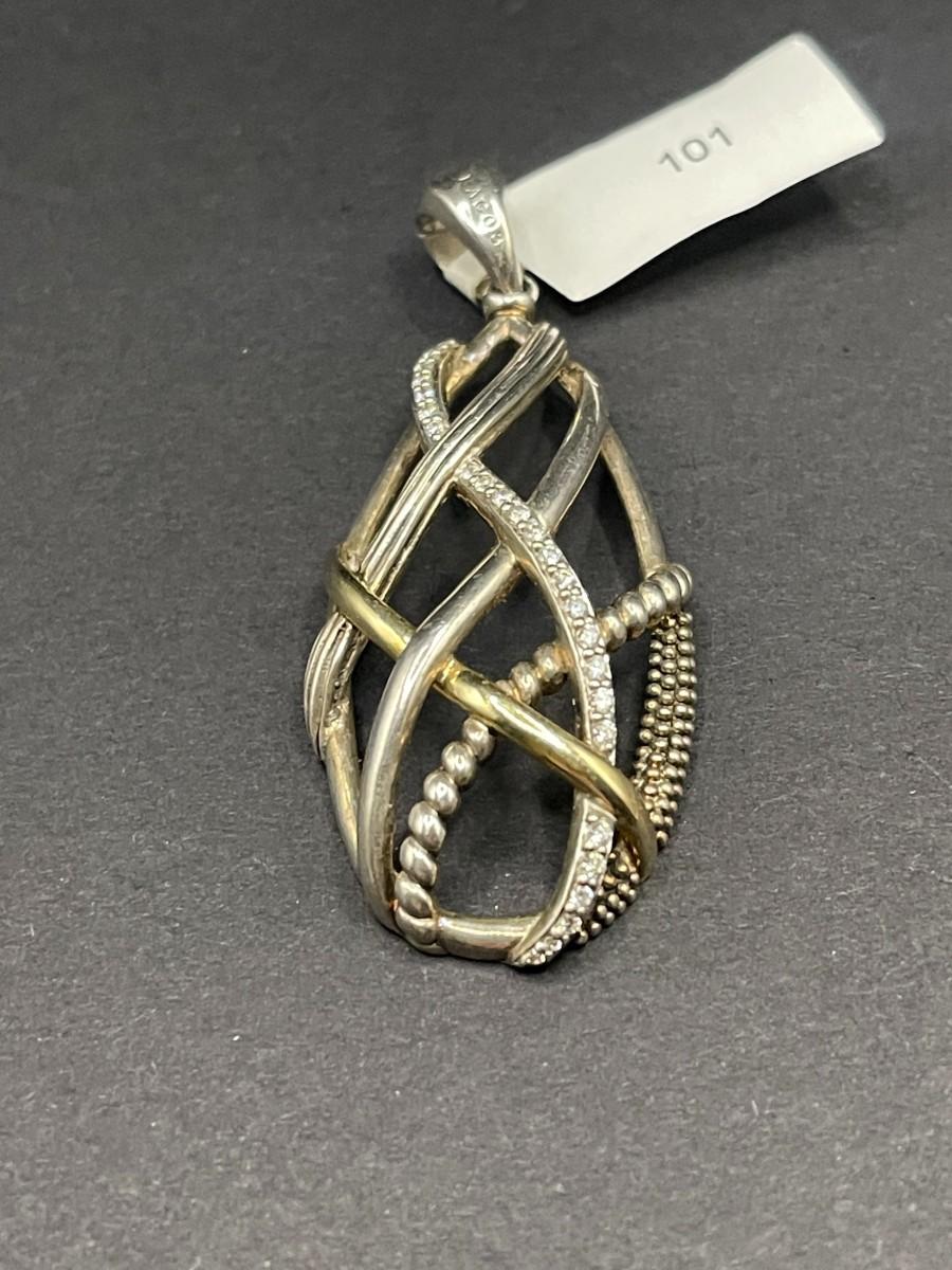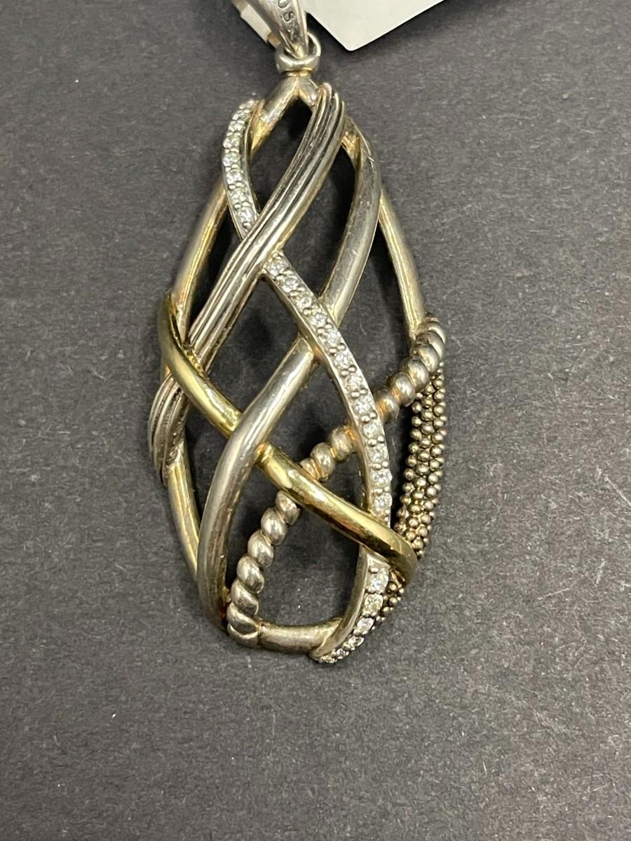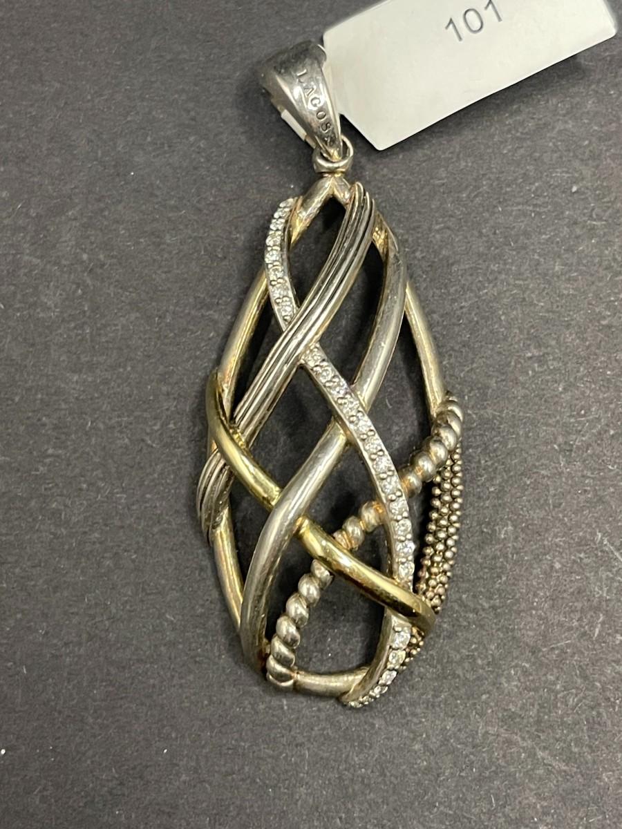 Lagos Caviar silver pendant set with diamonds. .375 ozt. Good condition with light scuff marks.