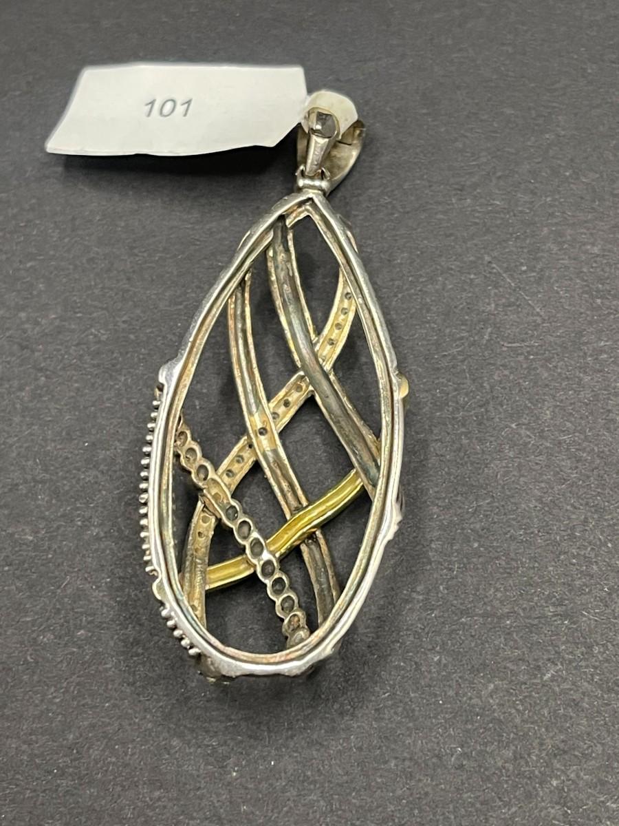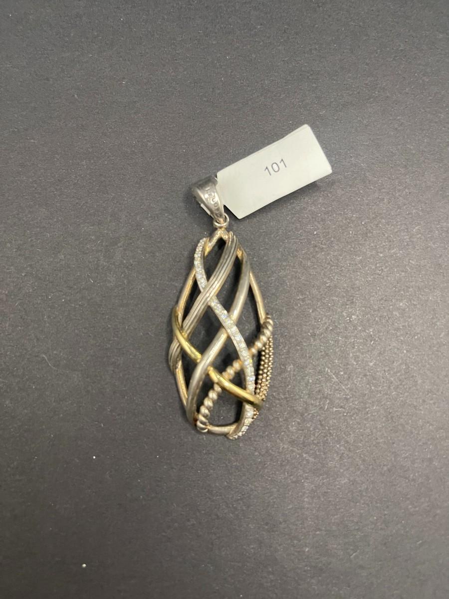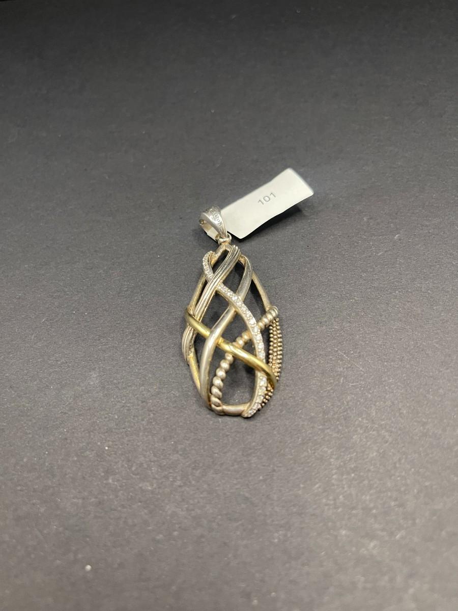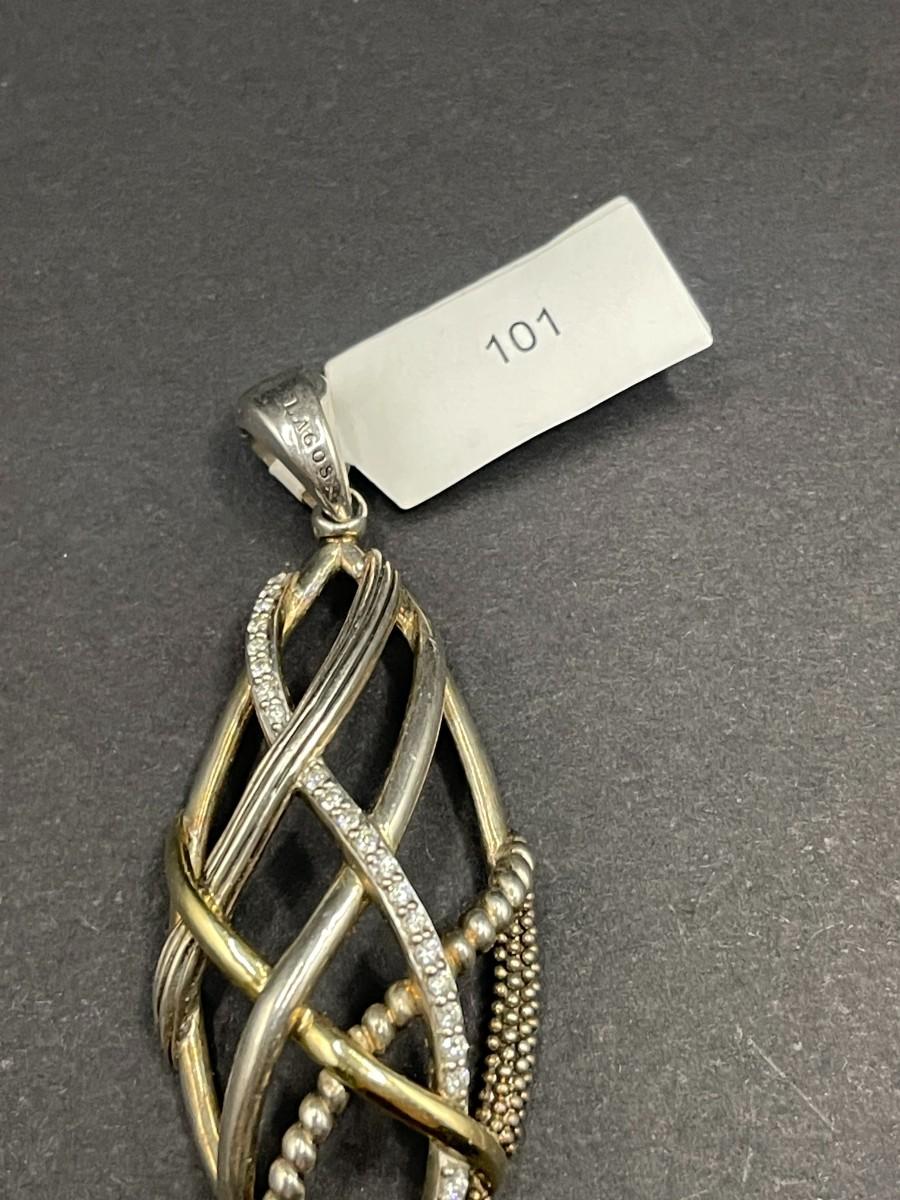 Lagos Caviar silver pendant set with diamonds. .375 ozt. Good condition with light scuff marks.