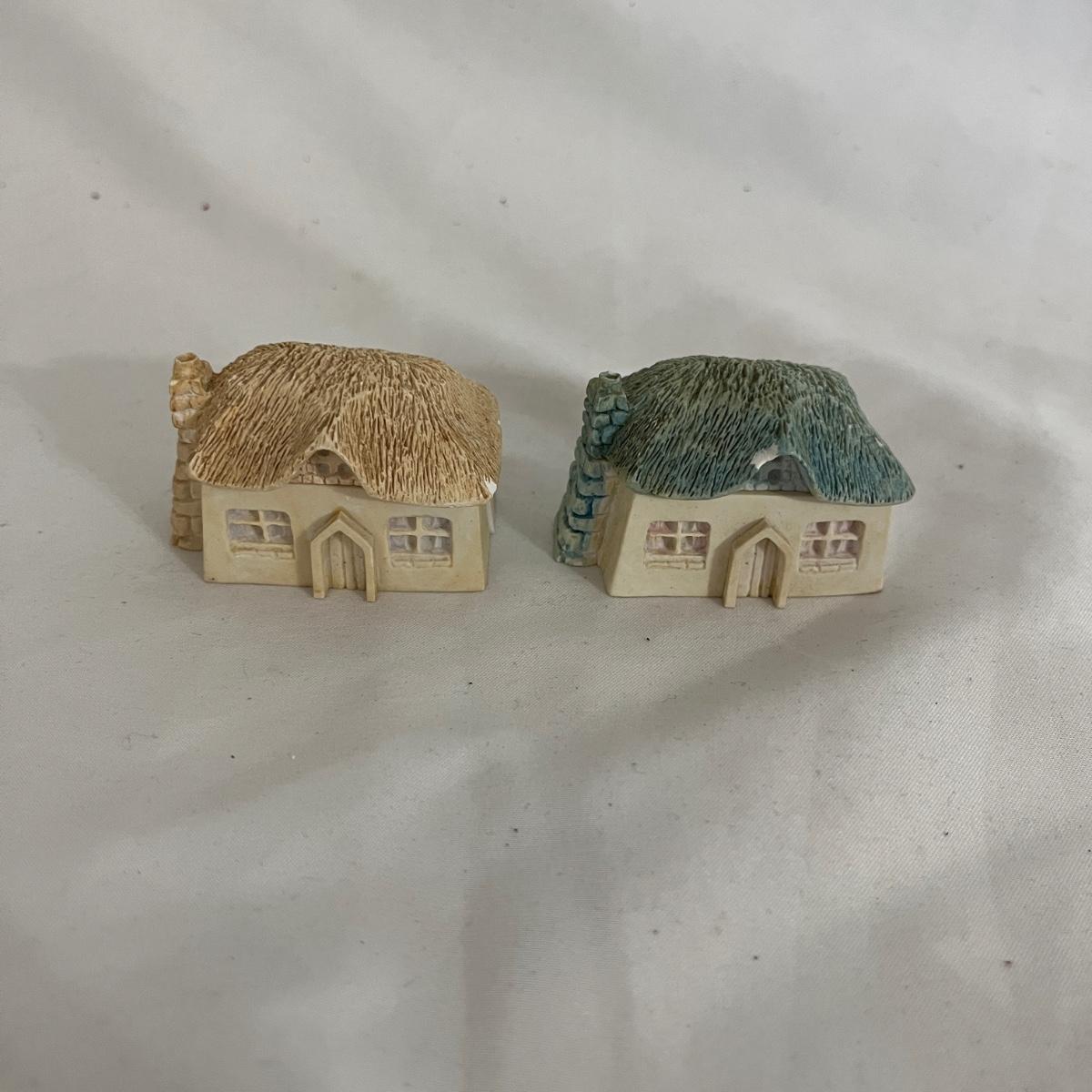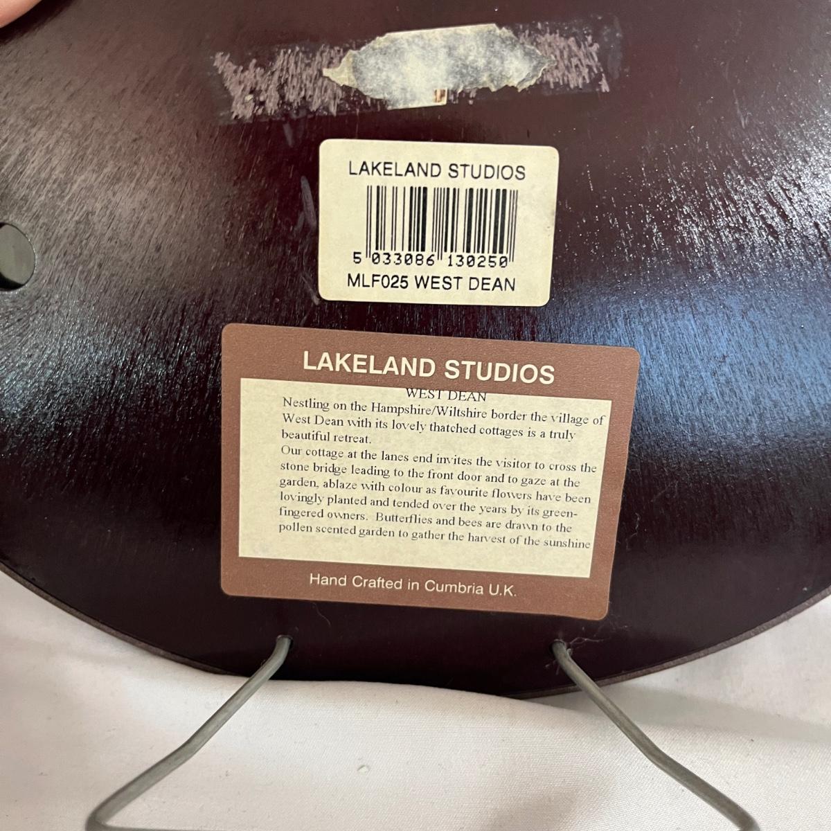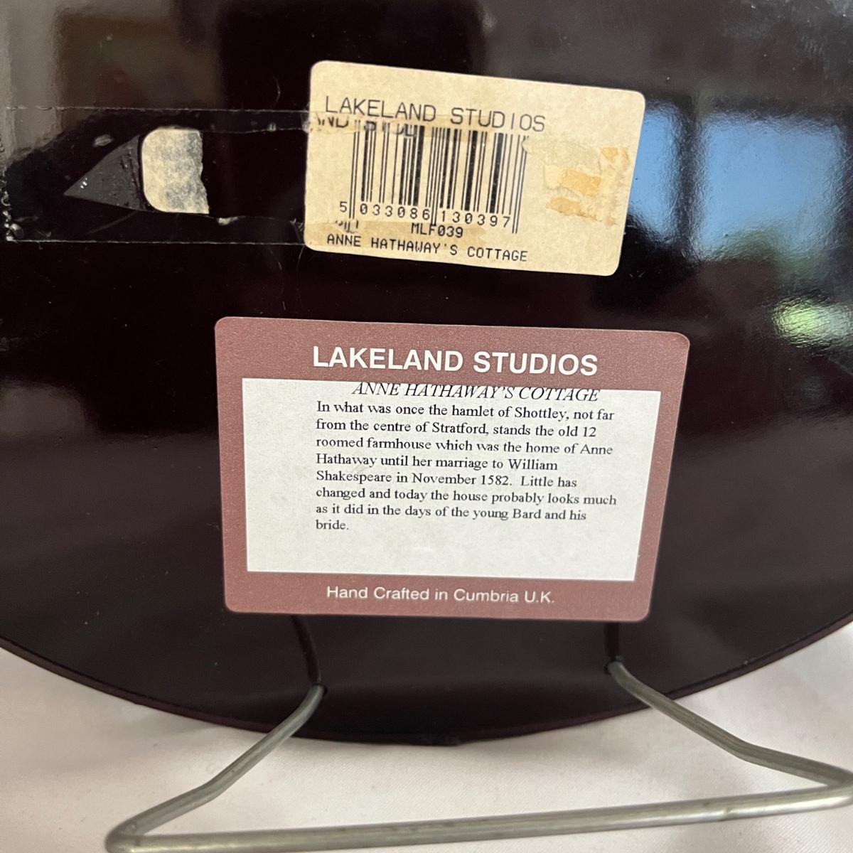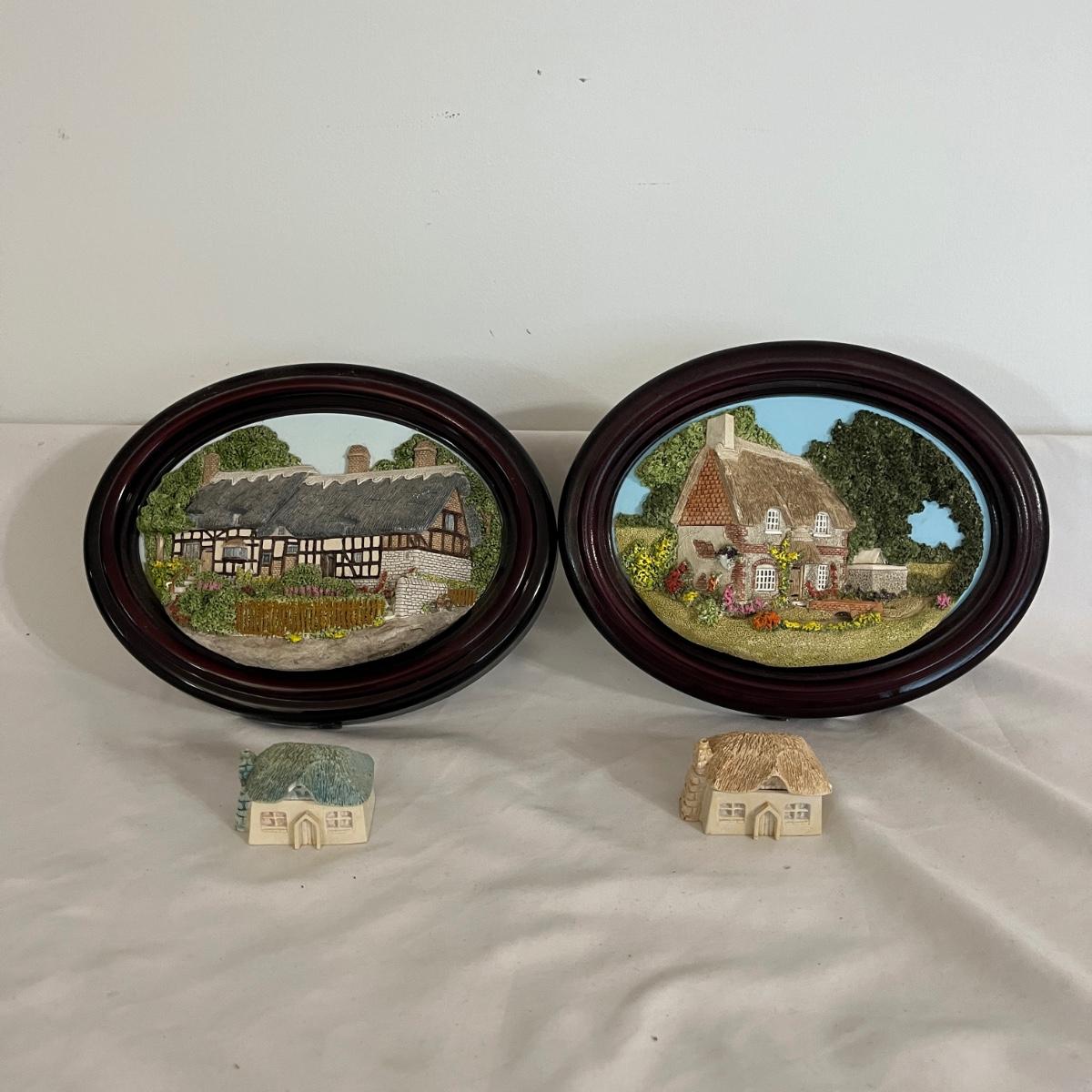 Lot includes two Lakeland Studios 3D plaques and two small ceramic cottage boxes. Plaques measure 8” x 4” x 7”H. One small cottage is broken on the bottom half, see pictures, it appears to be fixable with glue and unnoticeable from the front with the roof on.