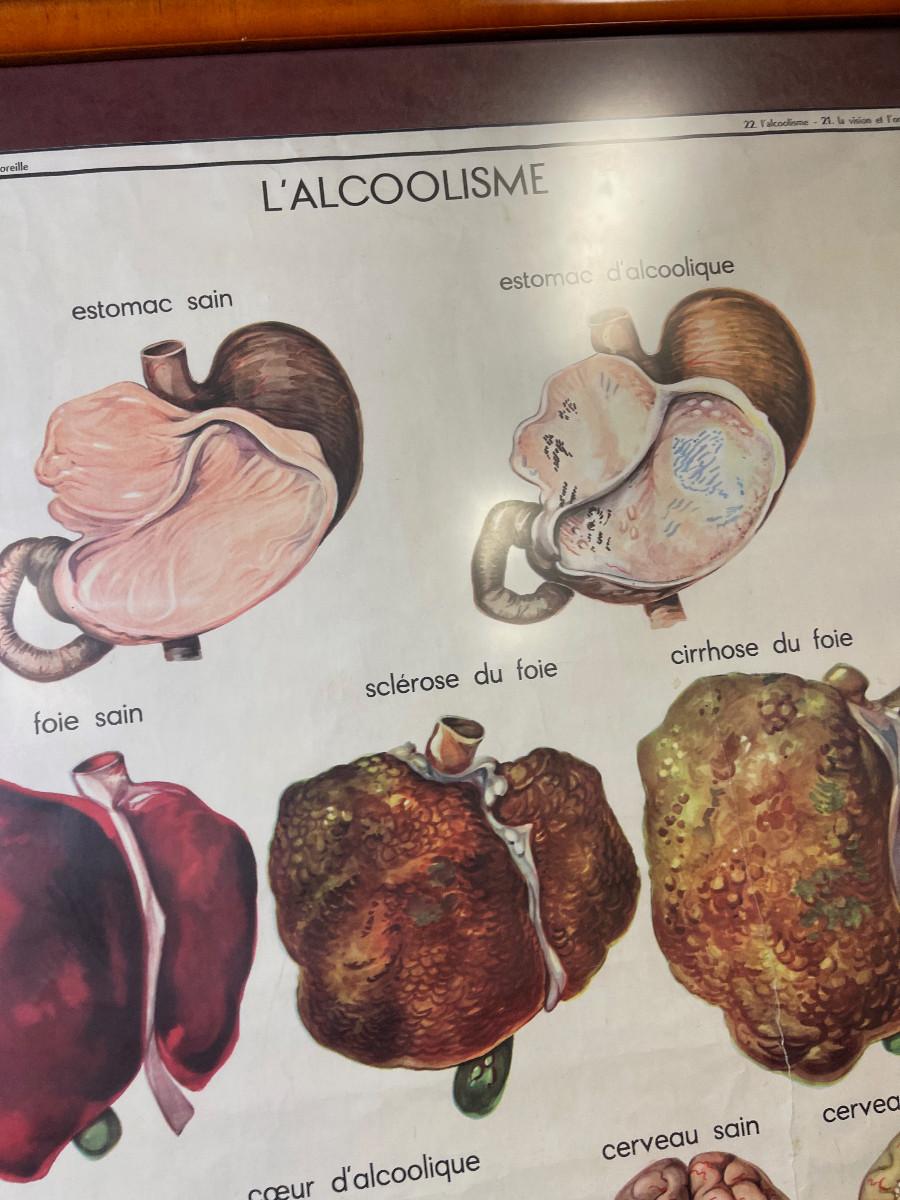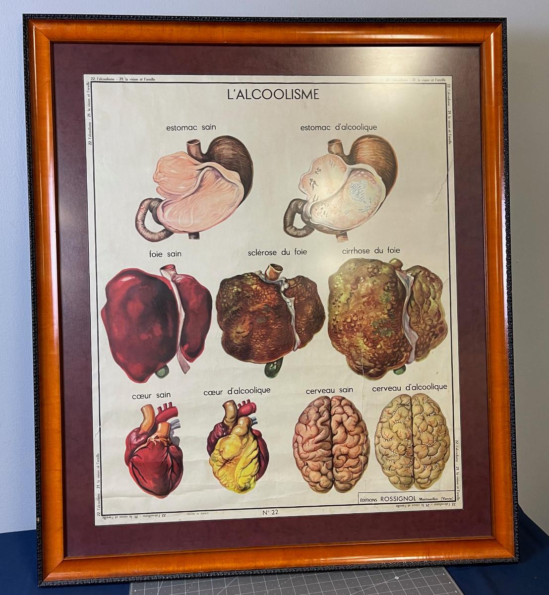 L'ALCOOLISME - (Affects of Alcohol) French Framed Poster, Antique