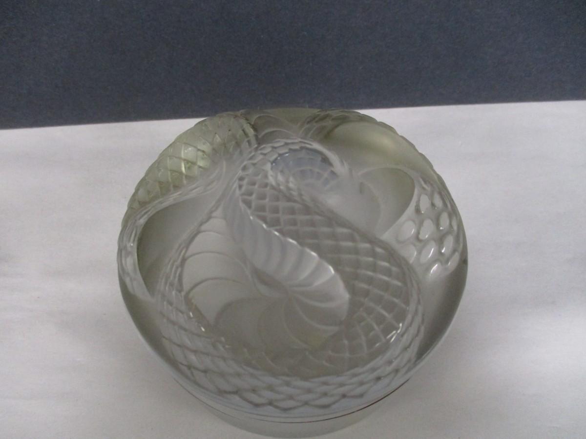 Lalique Crystal Hinged Box With Snake Design Lid With Box