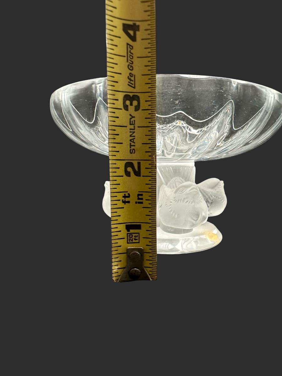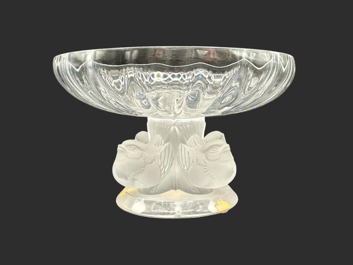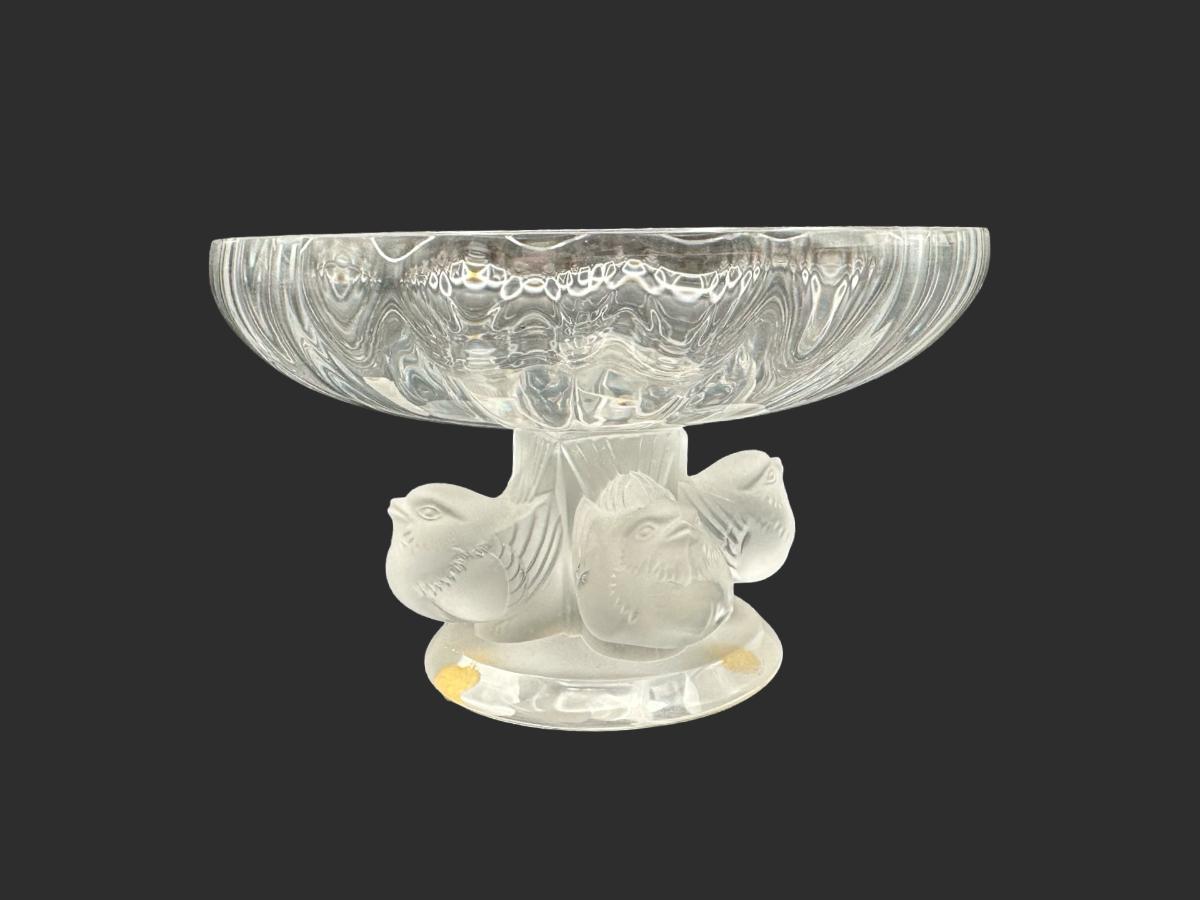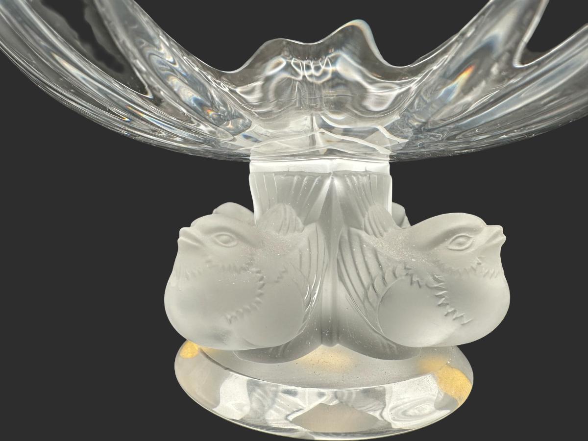 Lalique Crystal Pedestal Bowl with Frosted Bird Stem Nogent Pattern