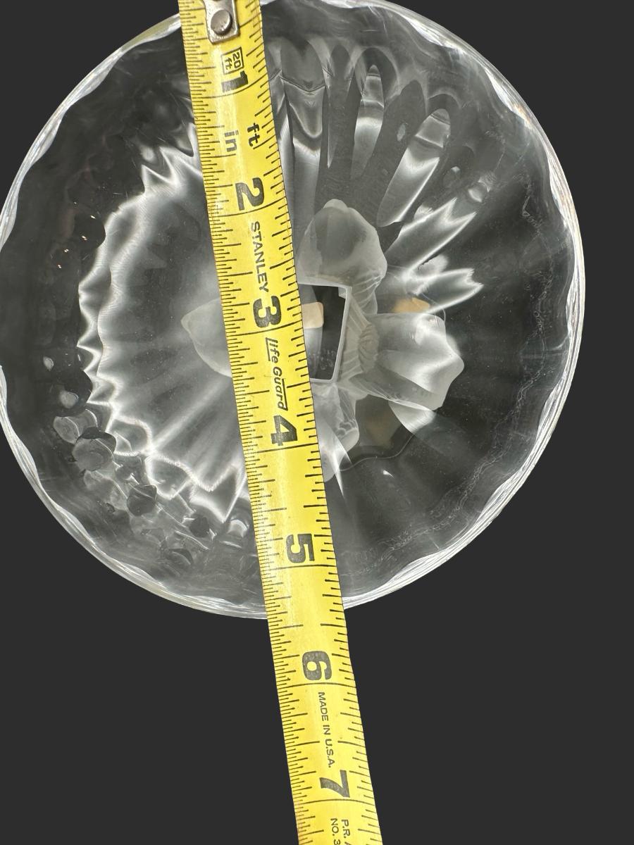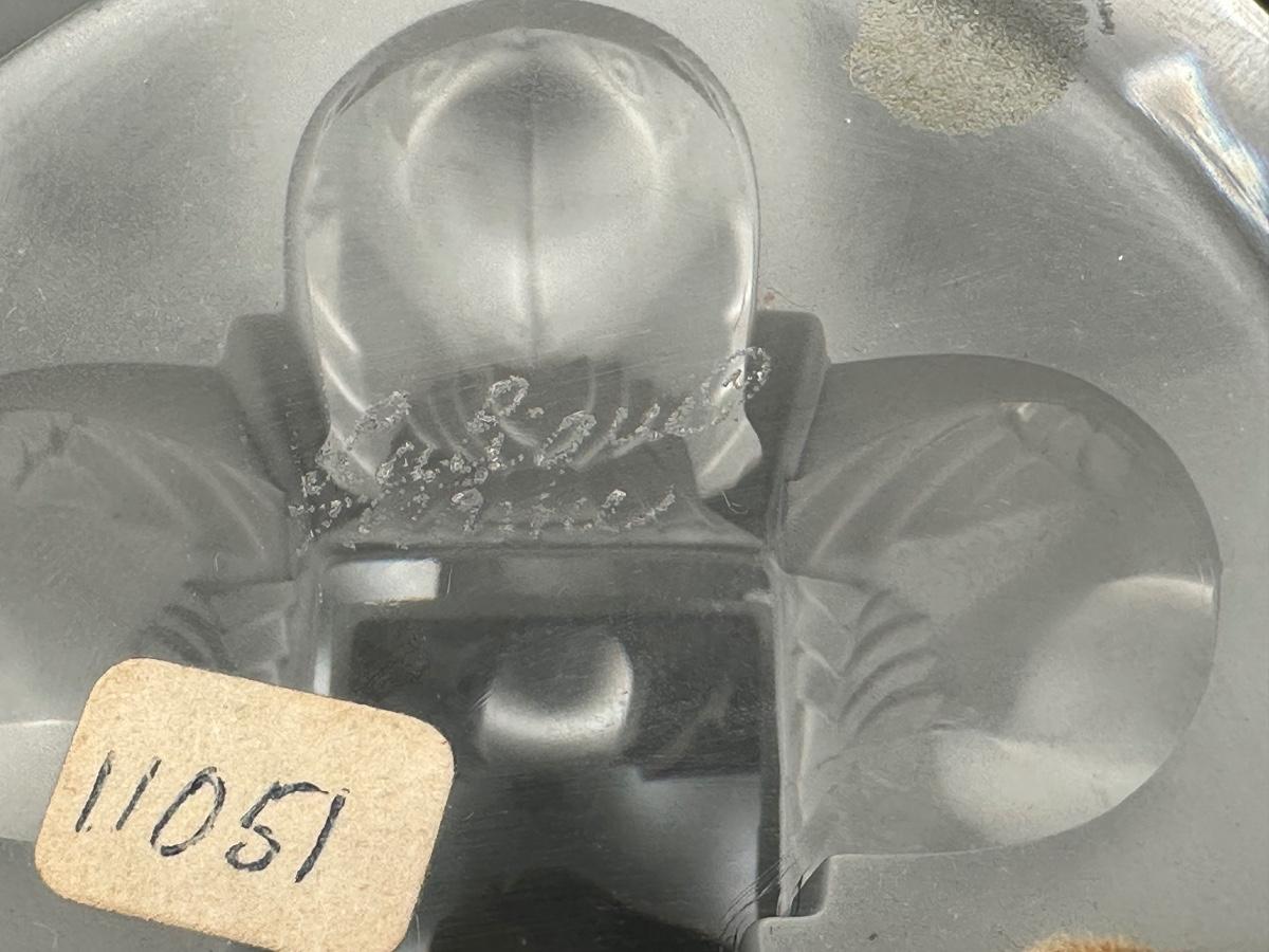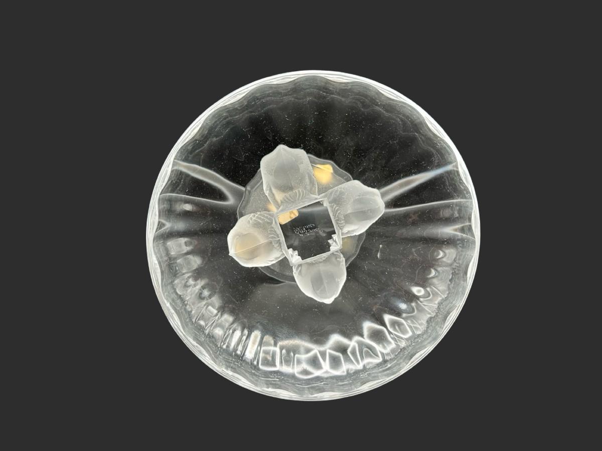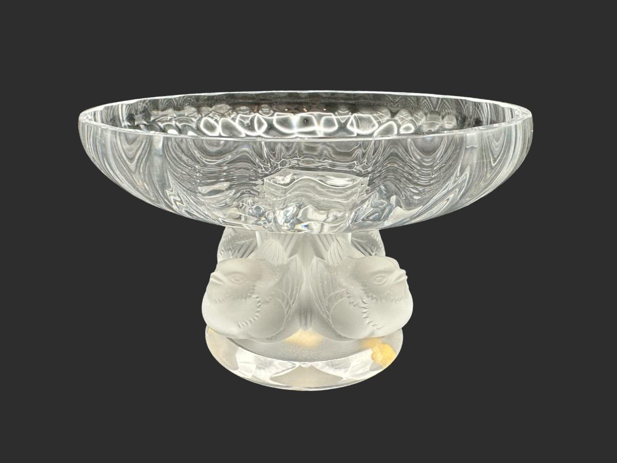 Lalique Crystal Pedestal Bowl with Frosted Bird Stem Nogent Pattern