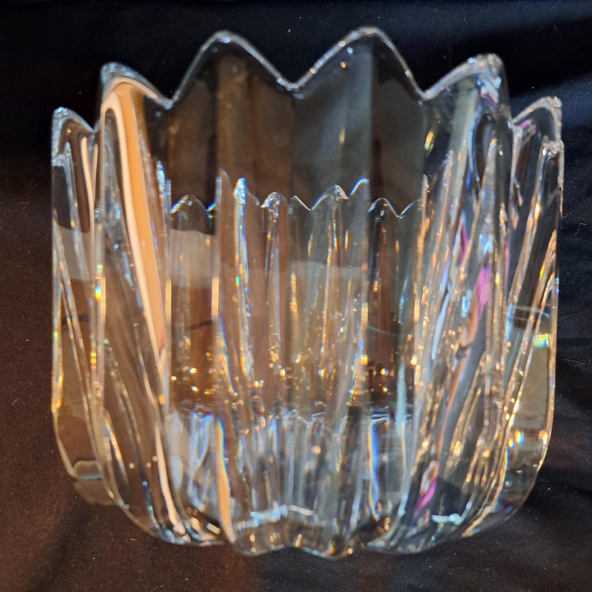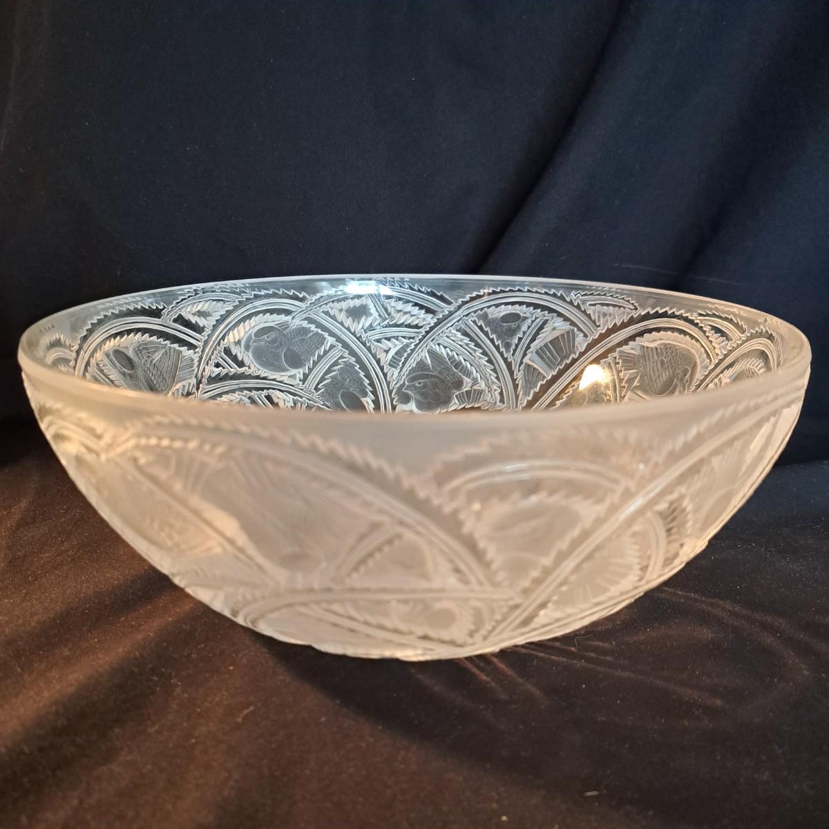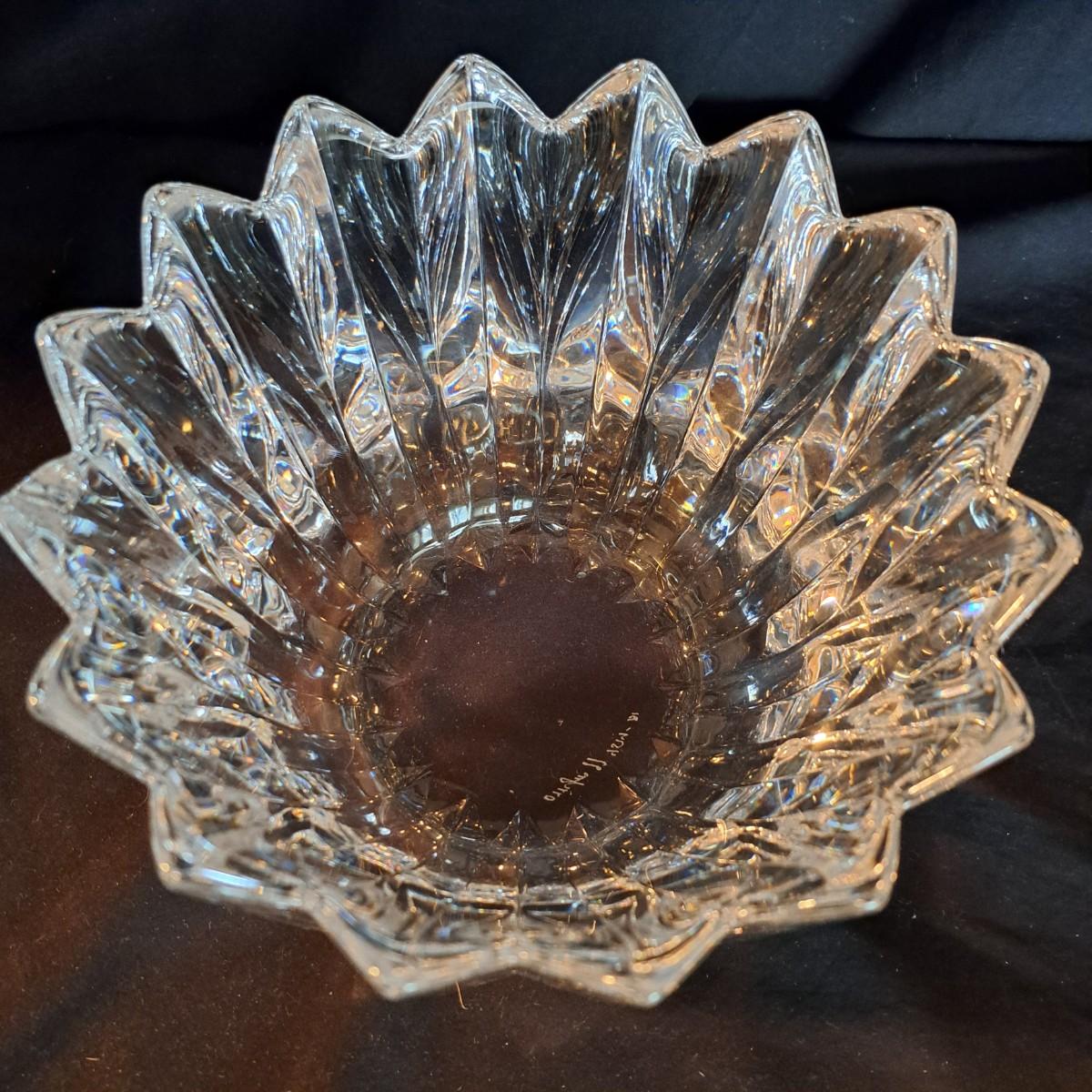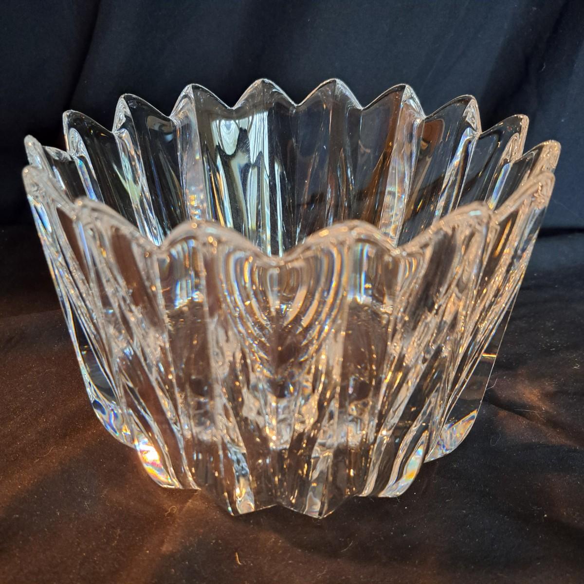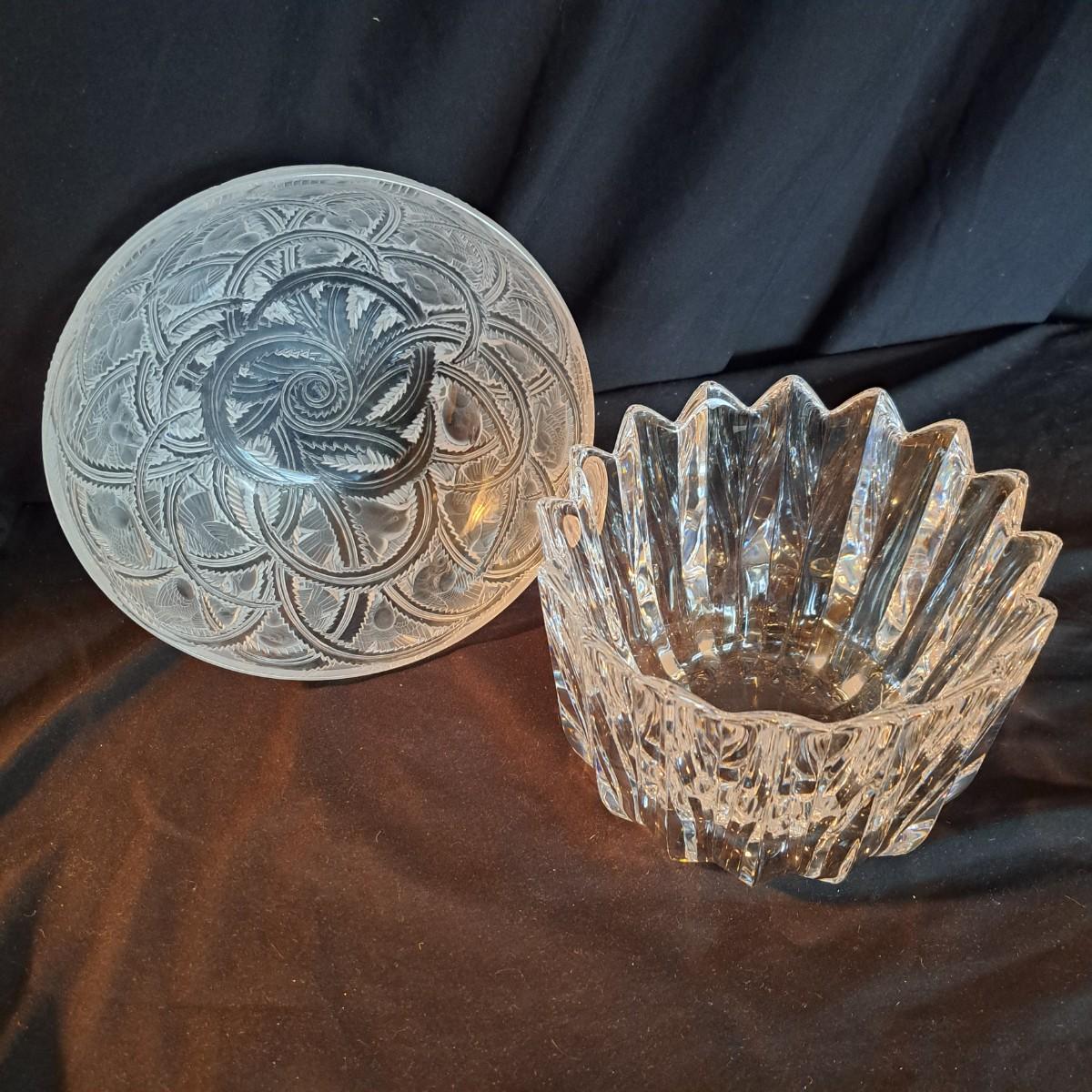 Lalique Crystal Prisms Sparrow Bowl & Orrefors Crystal Fleur Bowl (DR-SD)