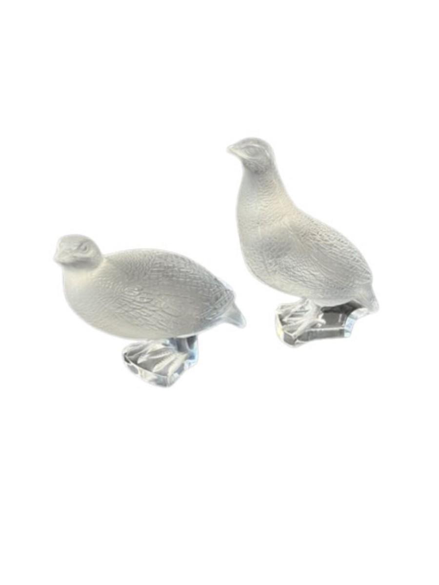 Lalique Crystal Quail Pair