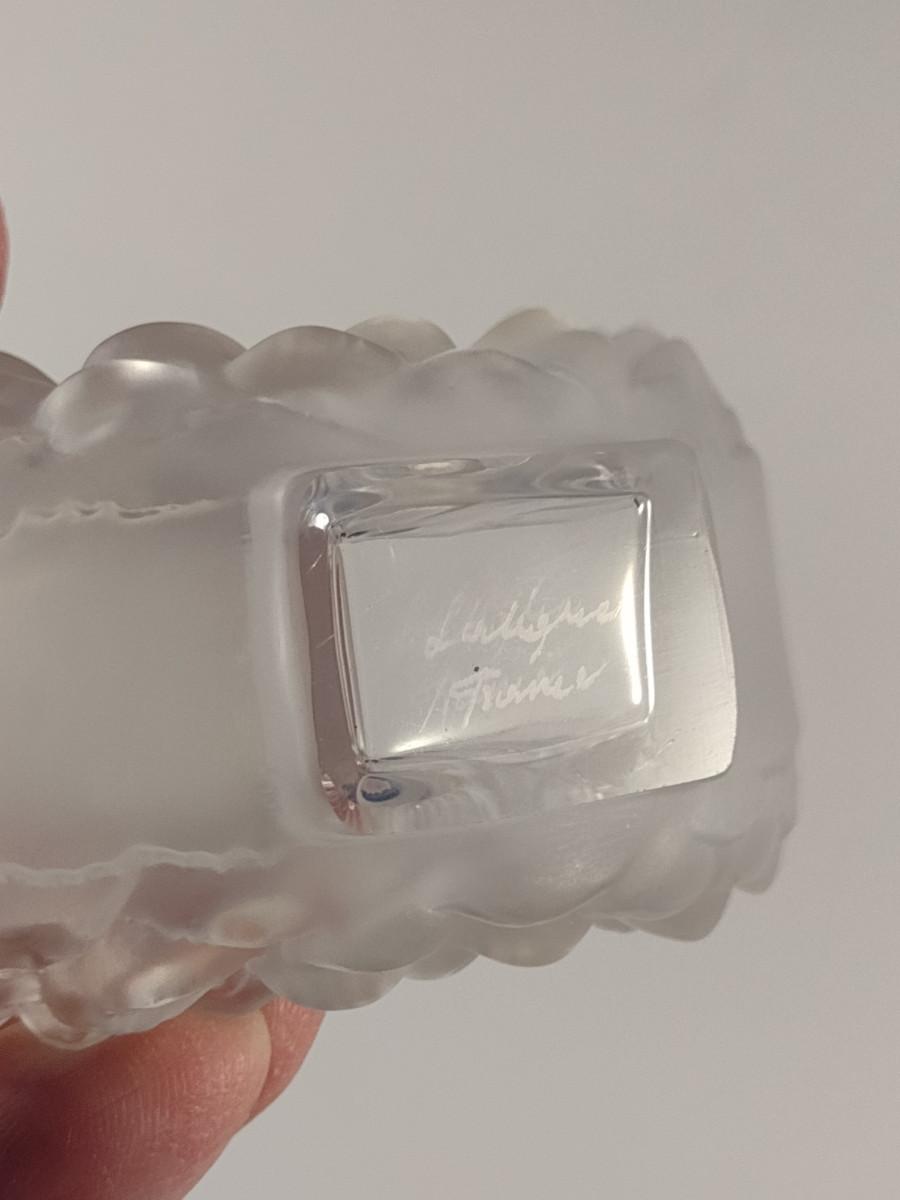 Lalique France Floral Design Perfume Bottle with Stopper. Please see all pictures for condition- stopper has small chip.
