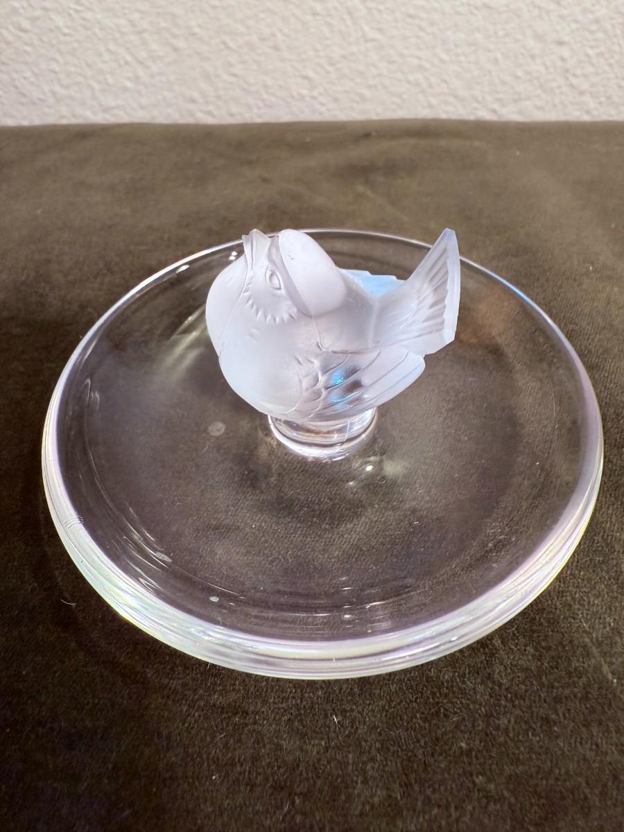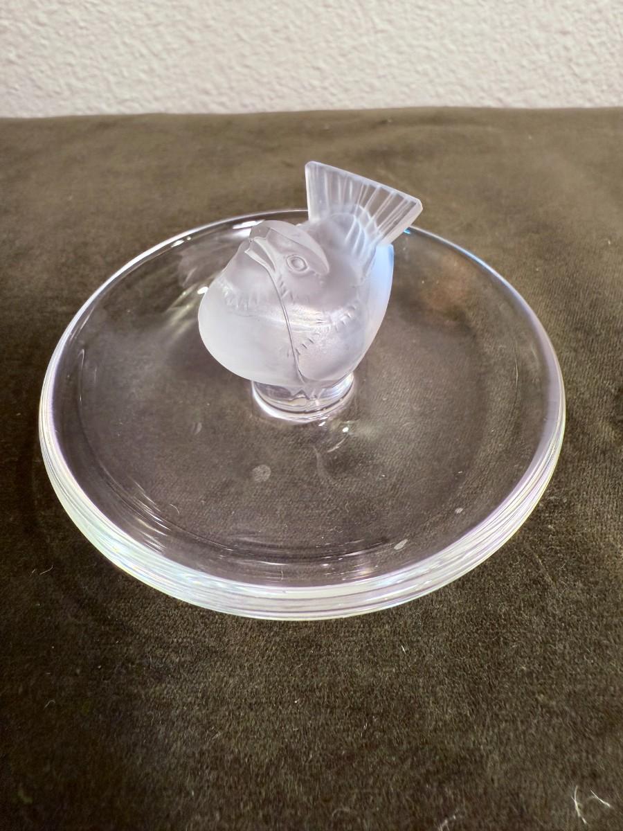 Pre-owned. Lalique France Ring Trinket Holder Dish Signed - Finch Pinson Bird