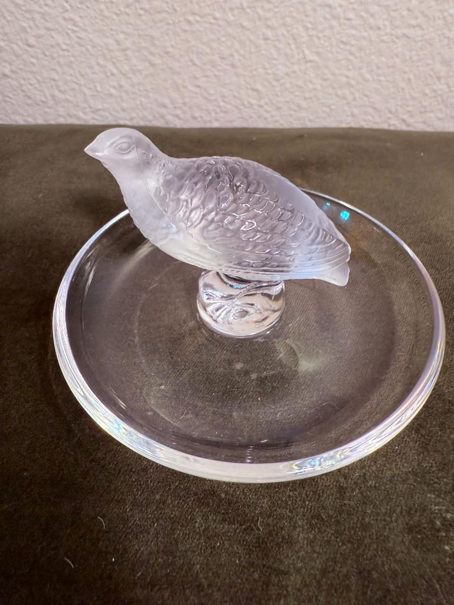 Lalique France Ring Trinket Holder Dish Signed - Quail/Partridge