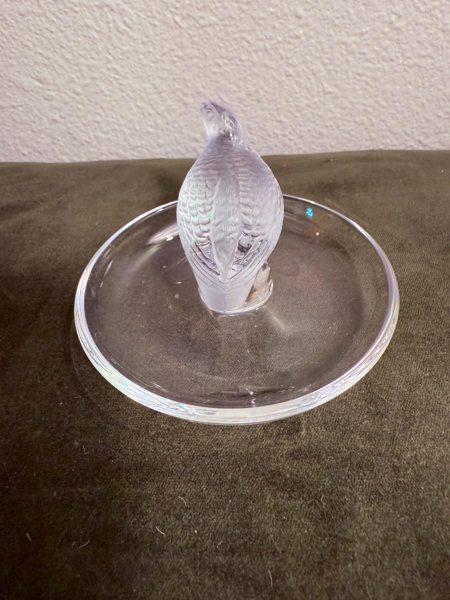 Pre-owned. Lalique France Ring Trinket Holder Dish Signed - Quail/Partridge H 2.3/8in | W 3.7/8in