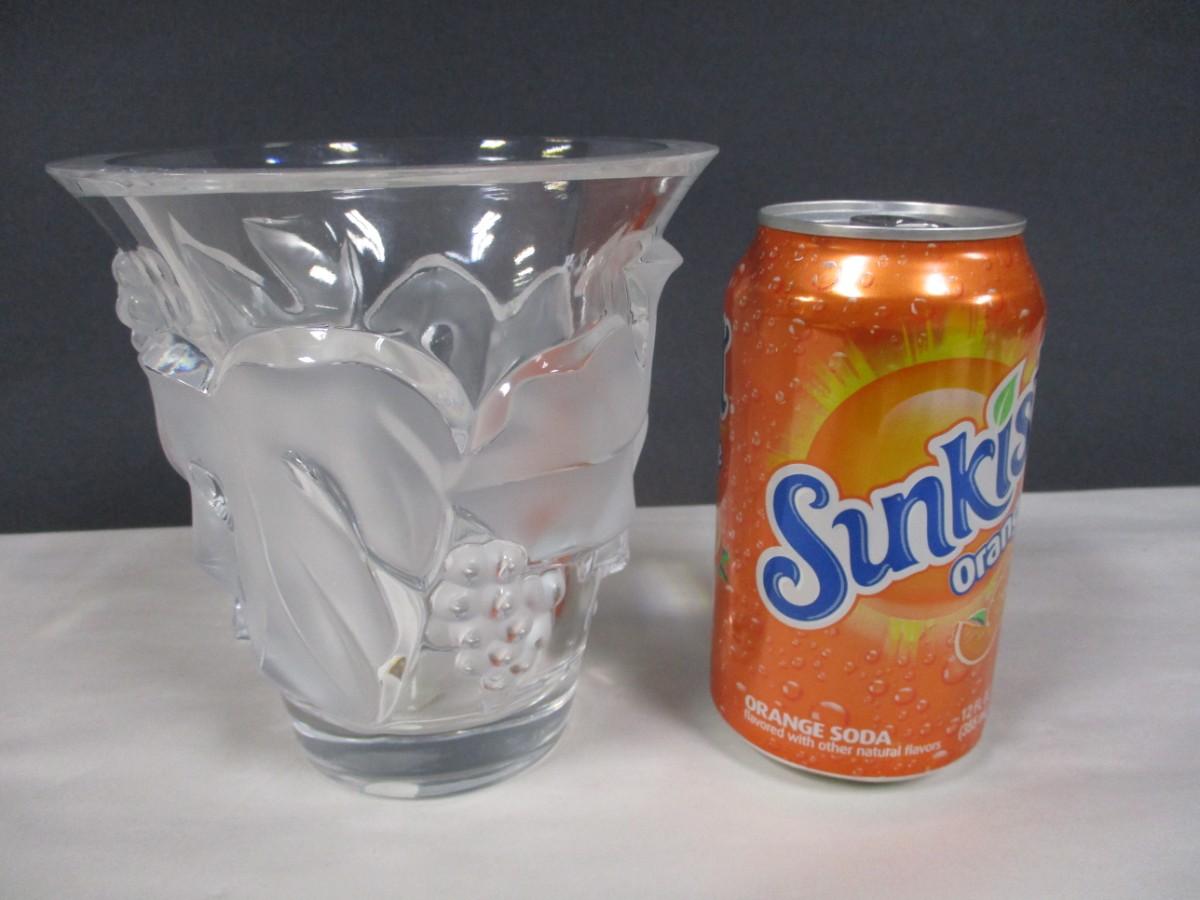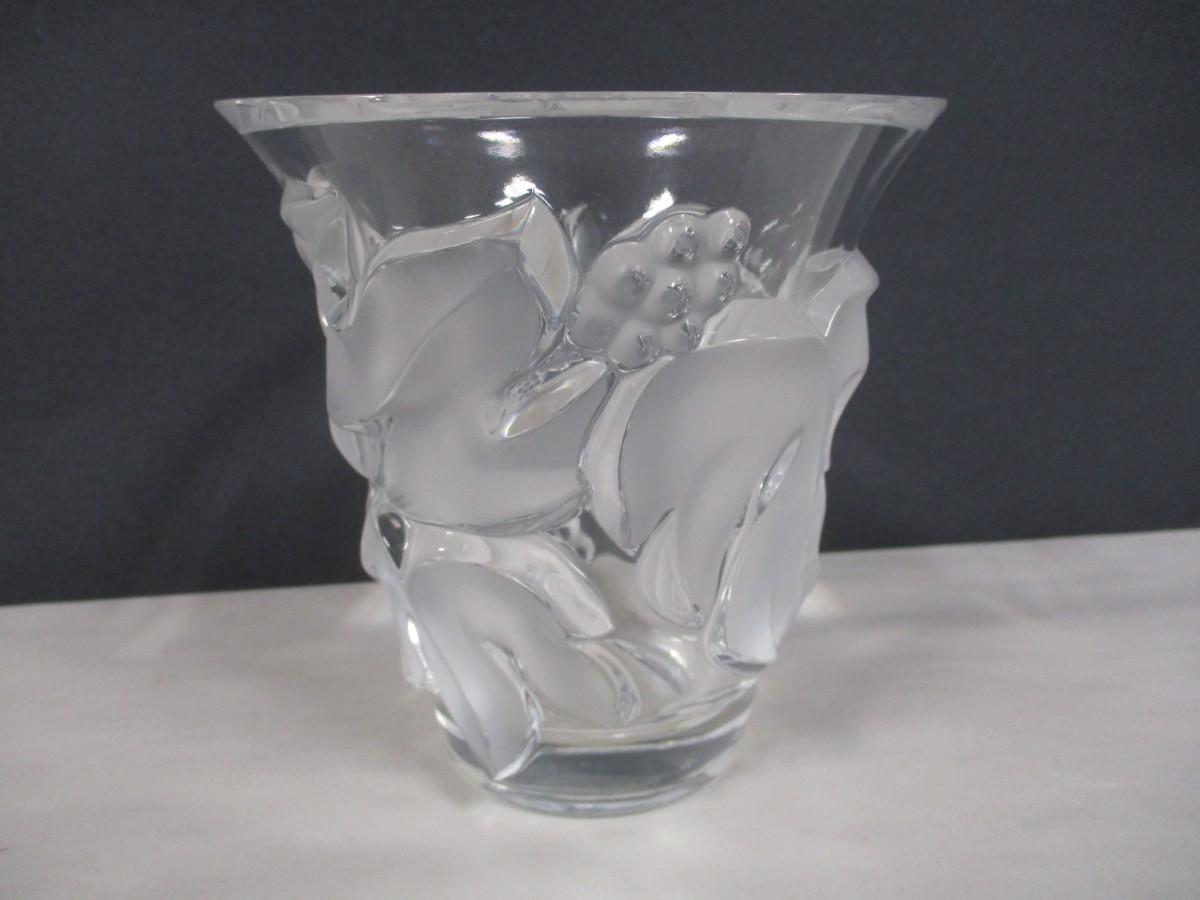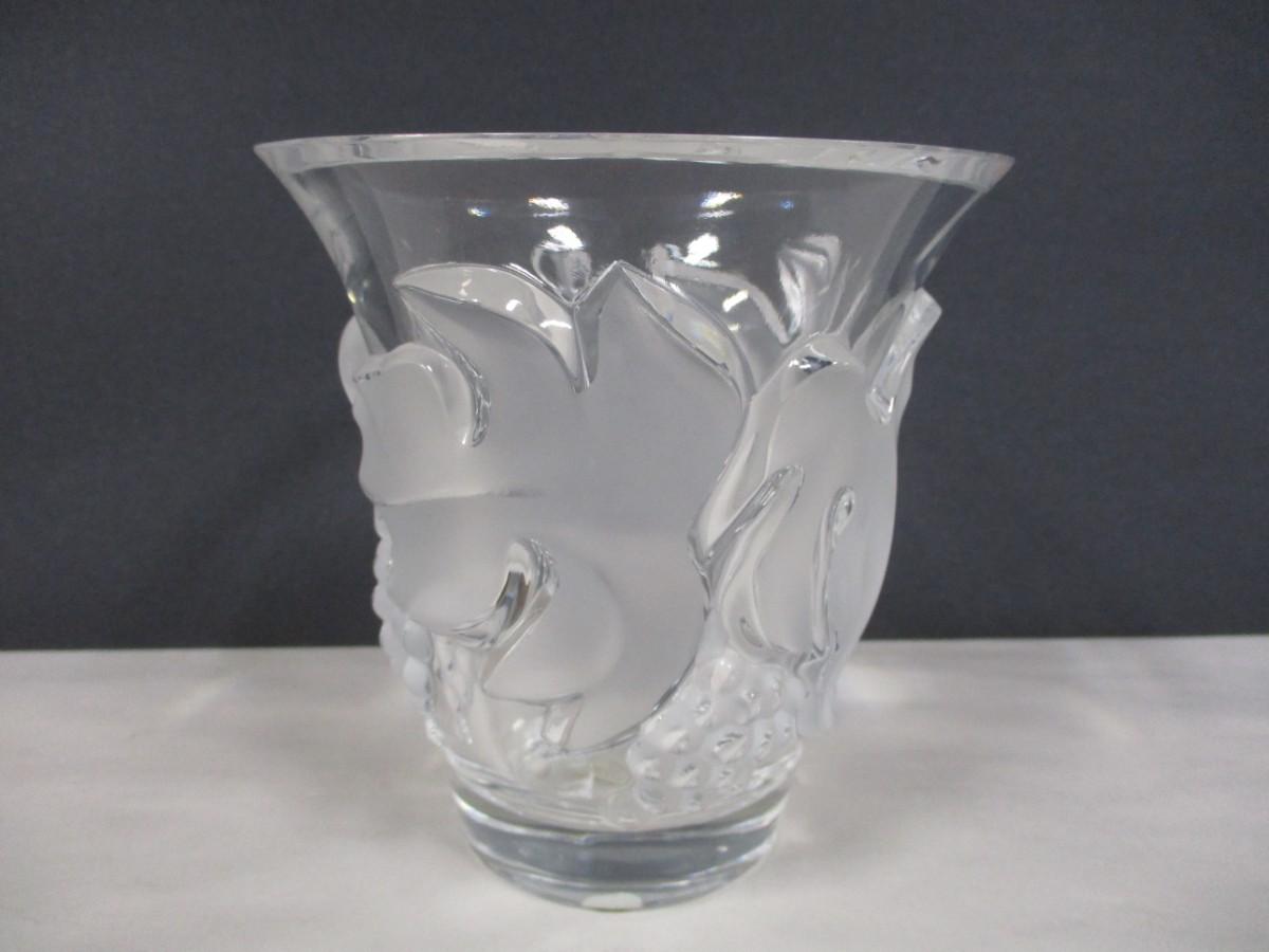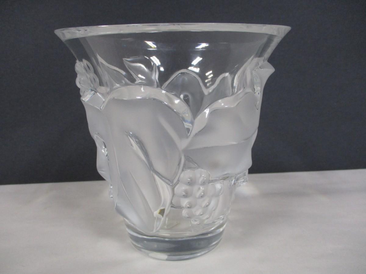 Lalique France Samur Crystal Vase Grapes & Leaves #12300