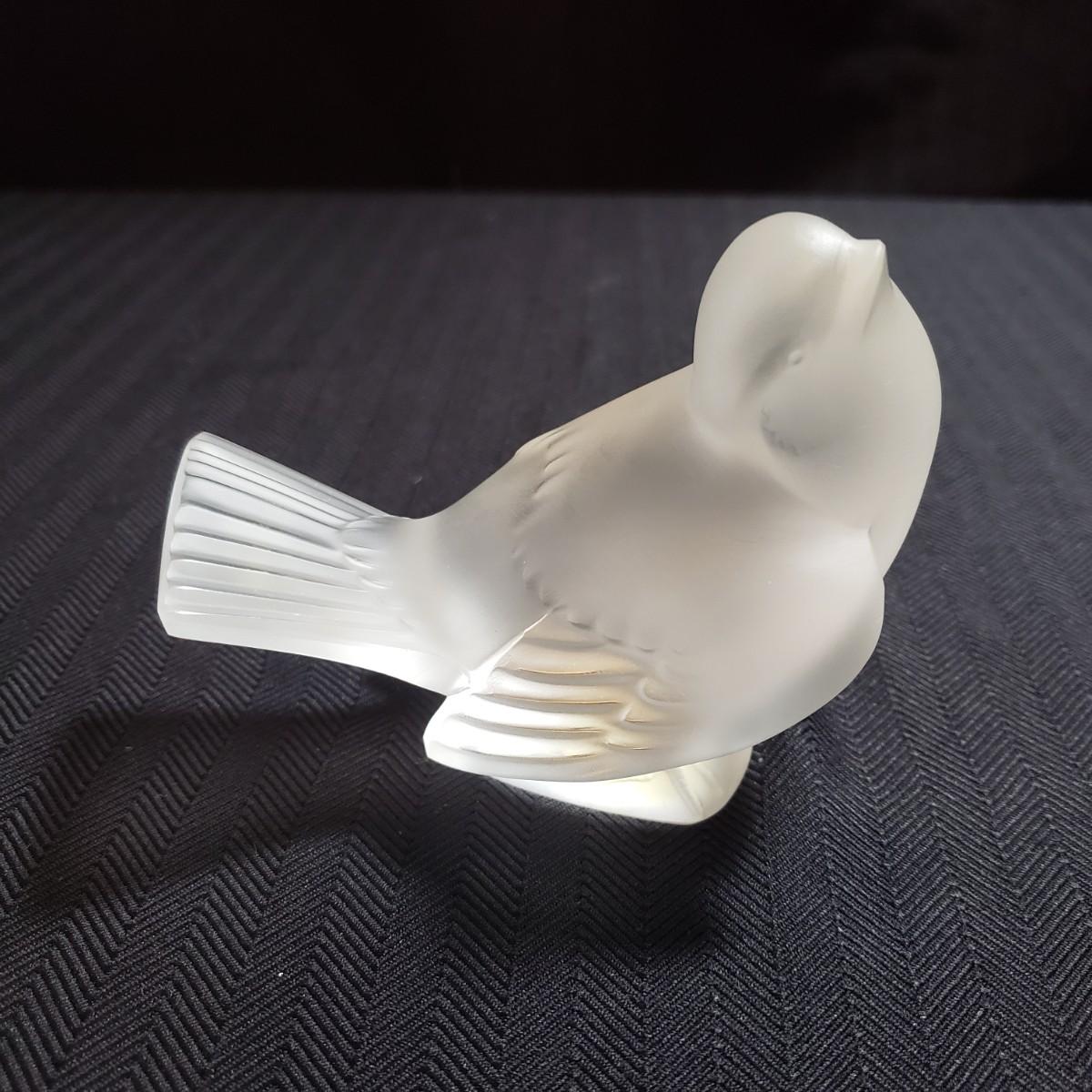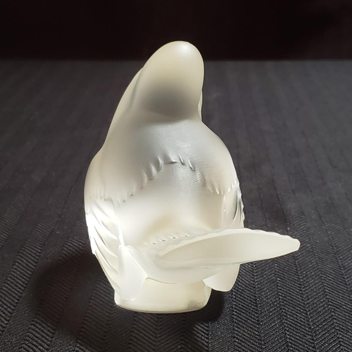 Lalique Frosted Sparrow & Smaller Glass Bird Figurines (O-KD)
