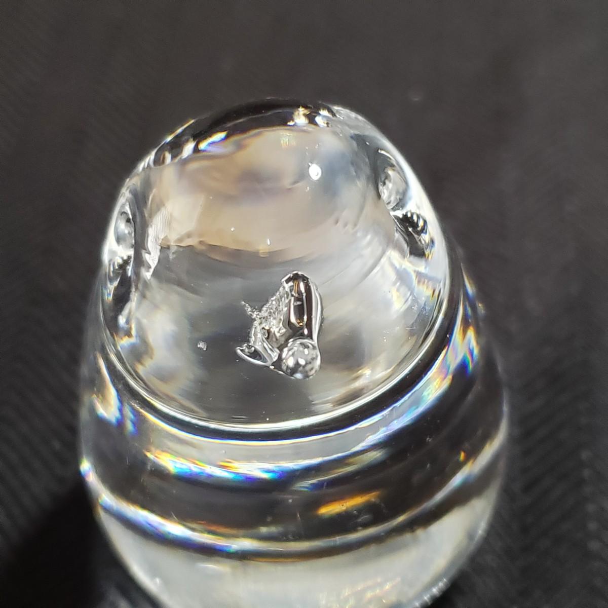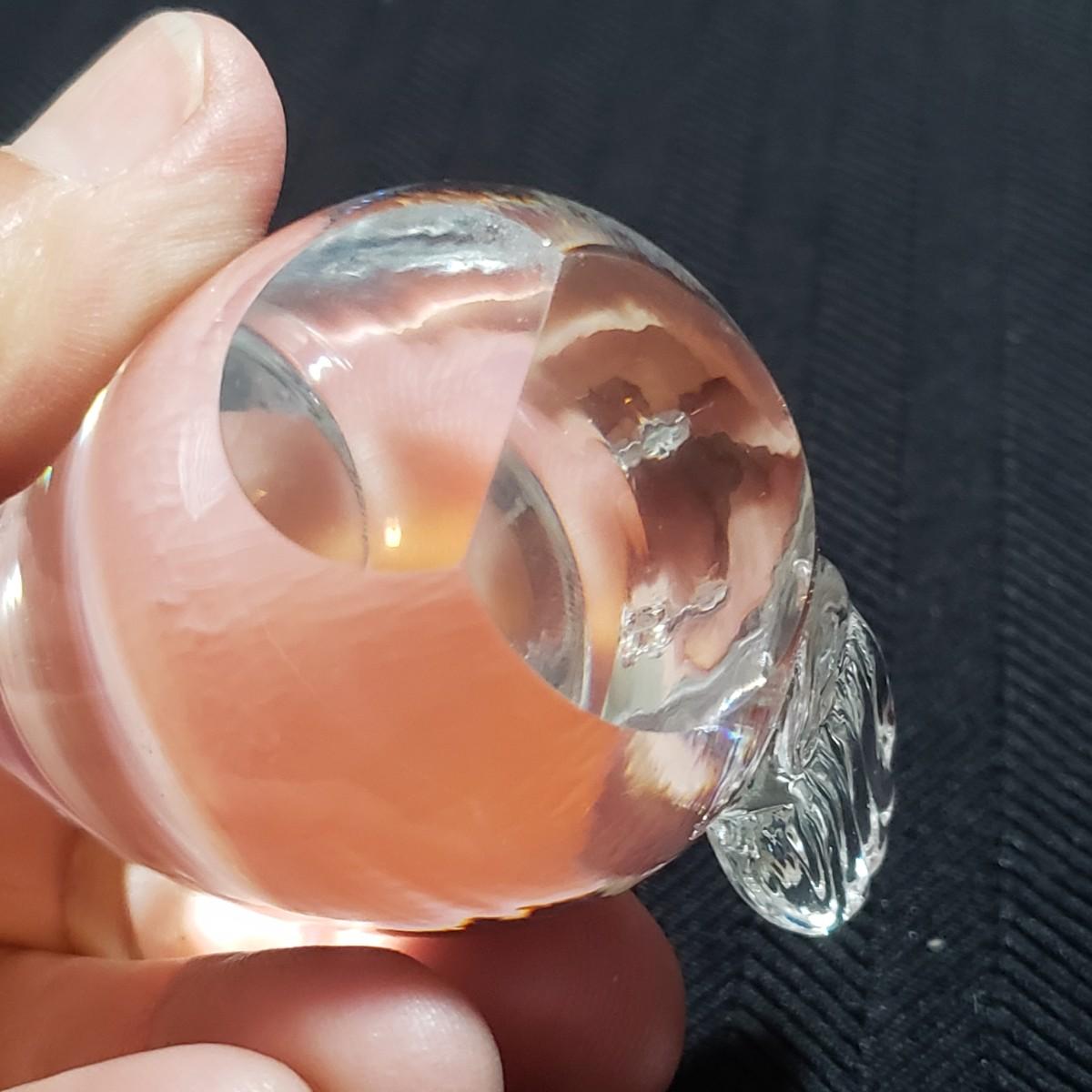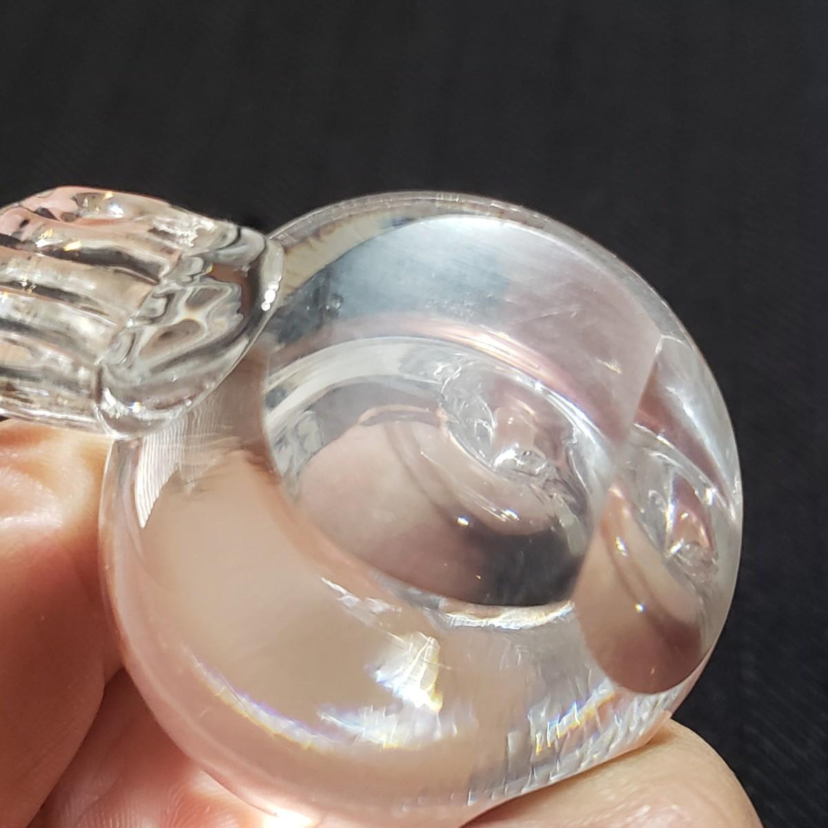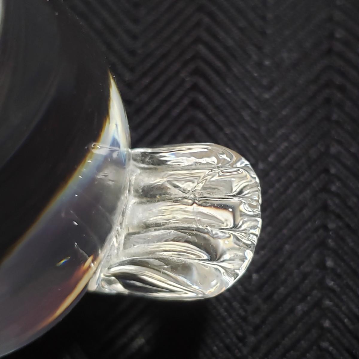 This sweet glass bird lot contains a Lalique frosted sparrow made in France. The bird measures approximately 4" x 2" x 4"H. Signature appears to read ‘Lalique. The smaller clear glass bird has two flattened areas so the bird can sit up or down, see last two pictures. Both pieces appear to be blemish free.