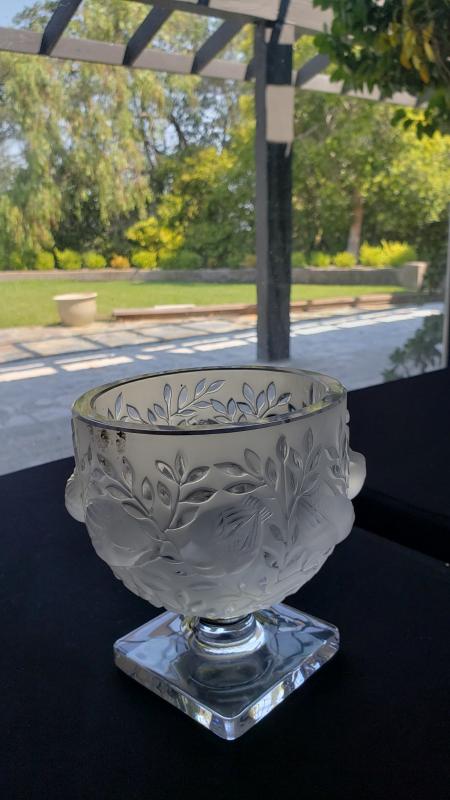 ELIZABETH Birds in Bush 12265 CRYSTAL PEDESTAL BOWL BY LALIQUE FRANCE