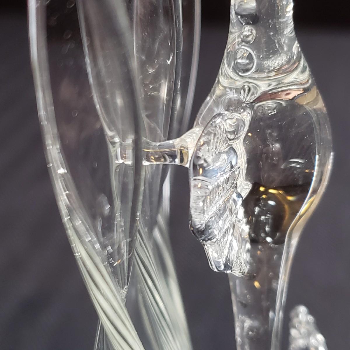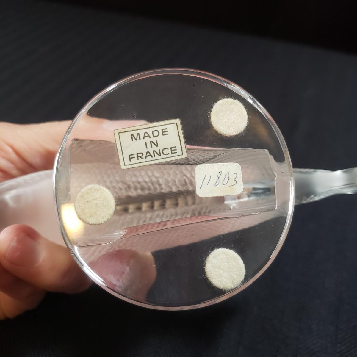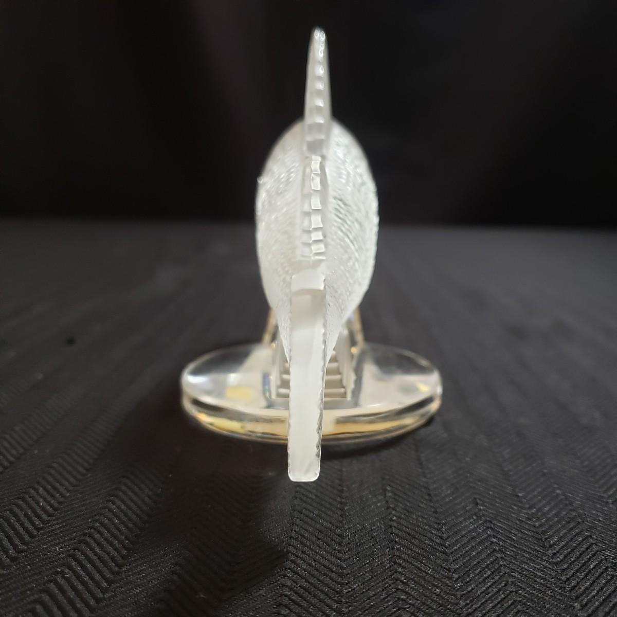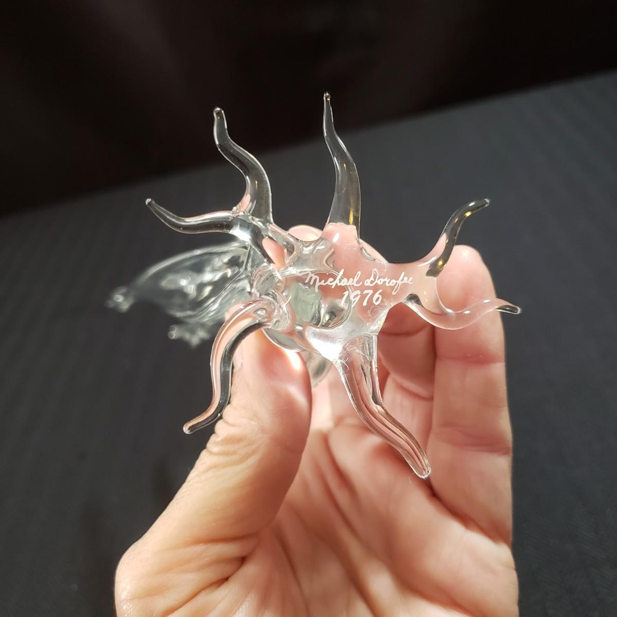 This gorgeous sealife lot features two pieces that appear to be signed/marked. A crystal Lalique fish made in France. The fish measures approximately 6" x 3" x 4"H. The scales and fins have a frosted look. There are three felted pads on the bottom. The delicate seahorse in seaweed is signed by Michael Dorofee in 1976. It looks delicate, but is solid to the touch. There is such detail on the seahorse. Both pieces appear to be blemish free.
