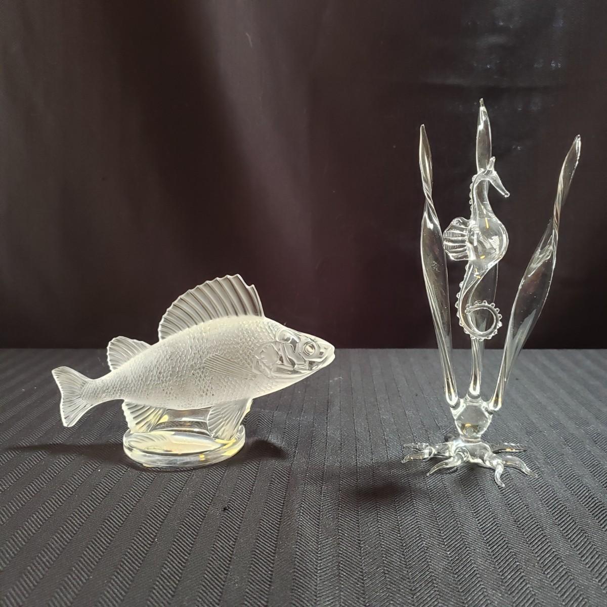 Lalique "Perche" Fish And A Dorofee Signed Glass Seahorse Figurine (O-KD)