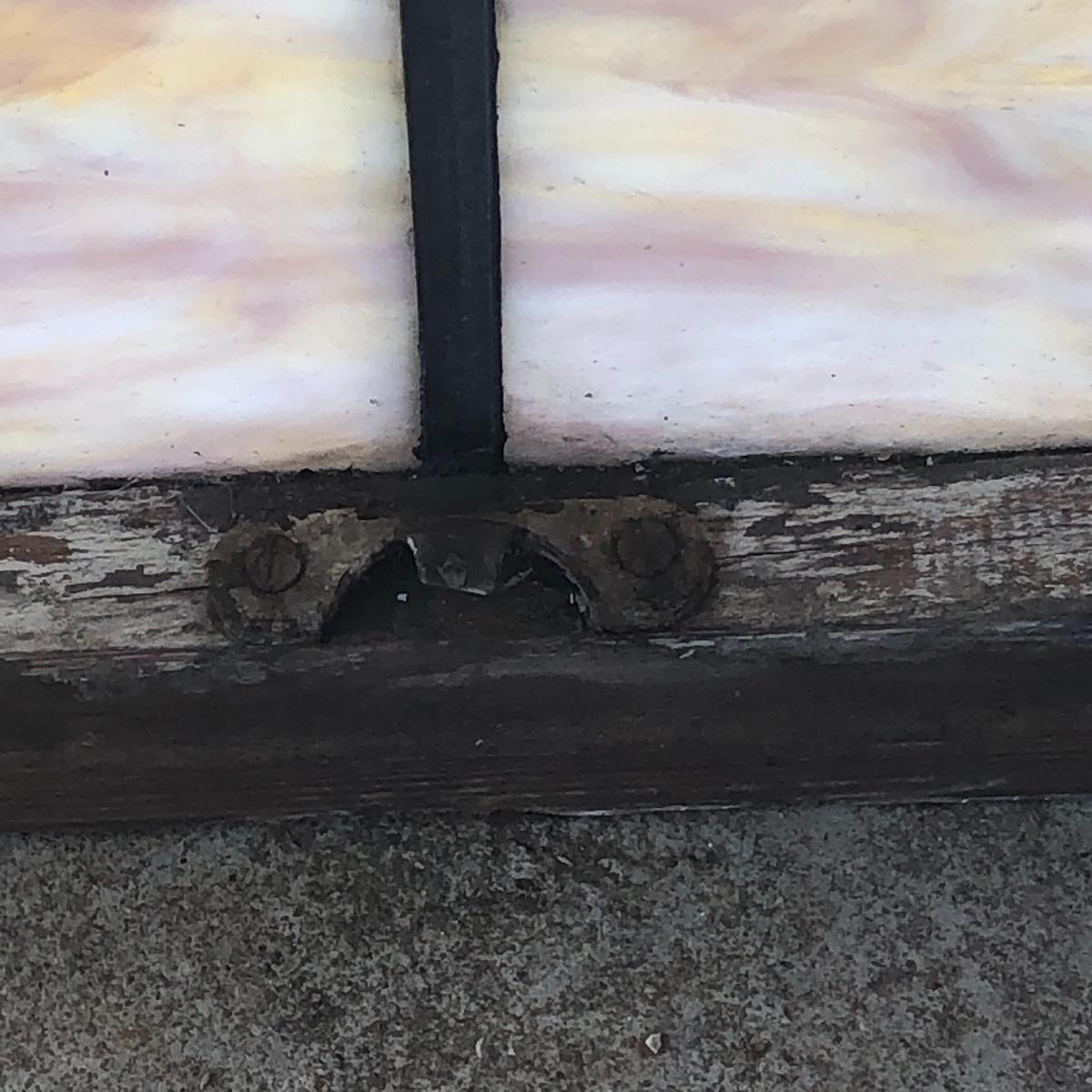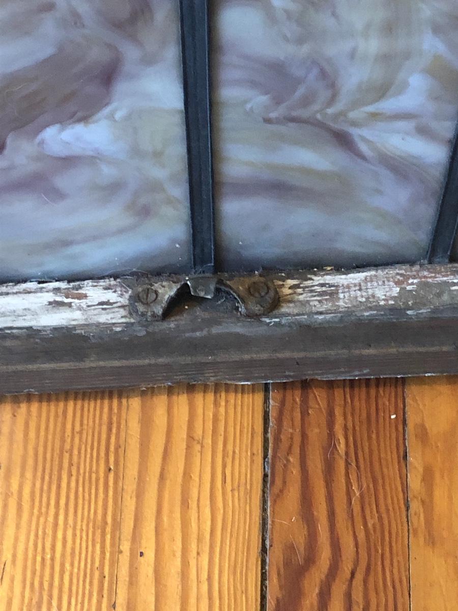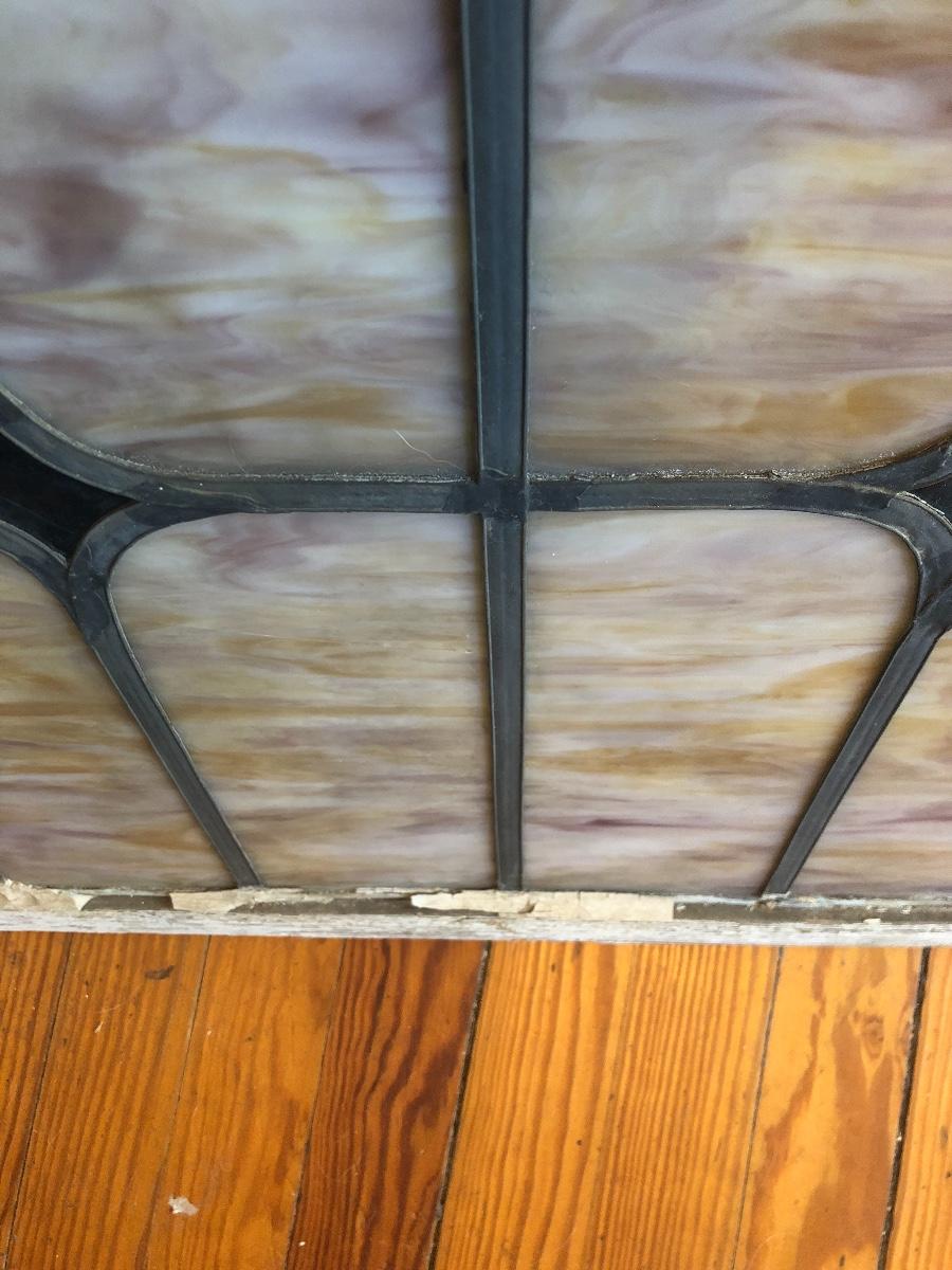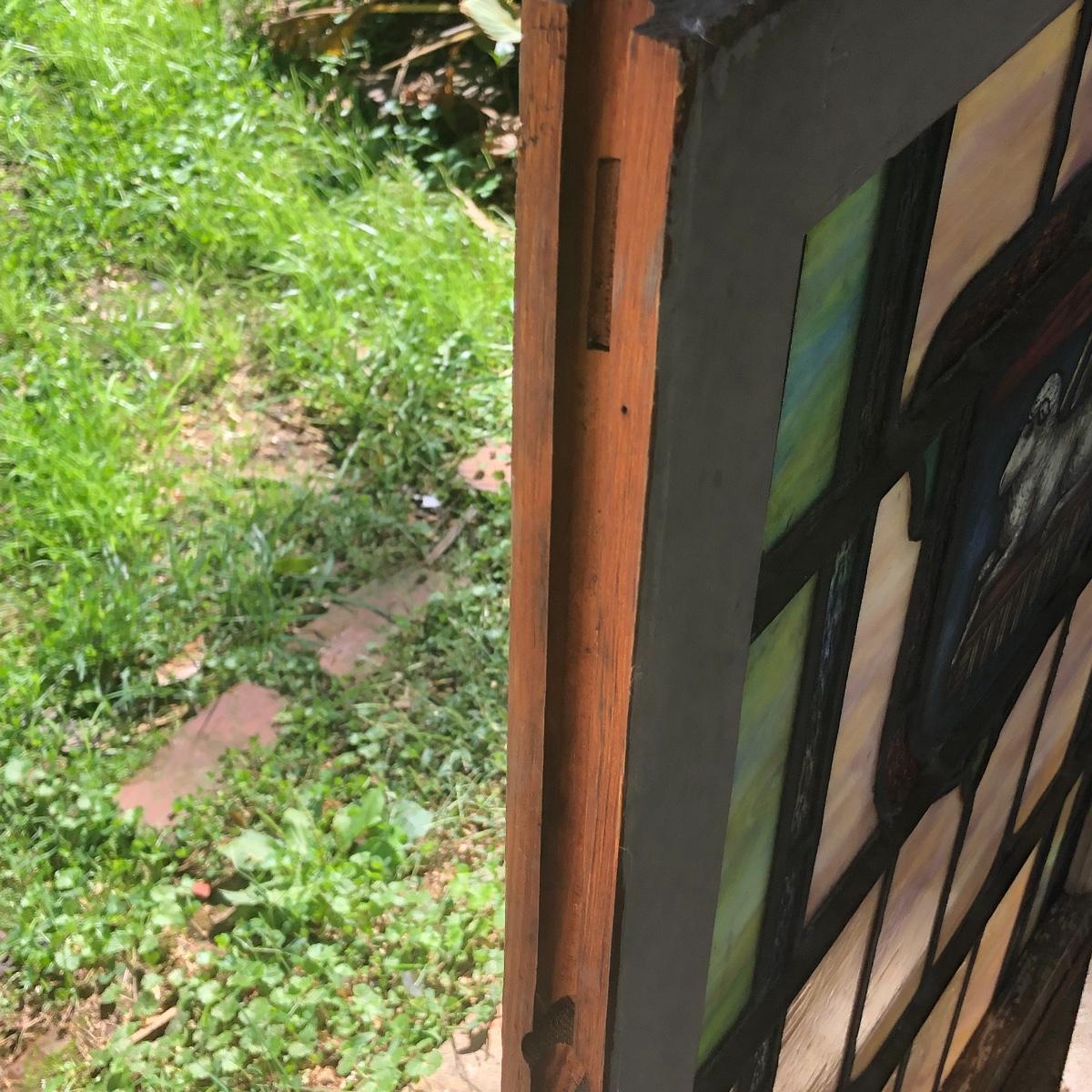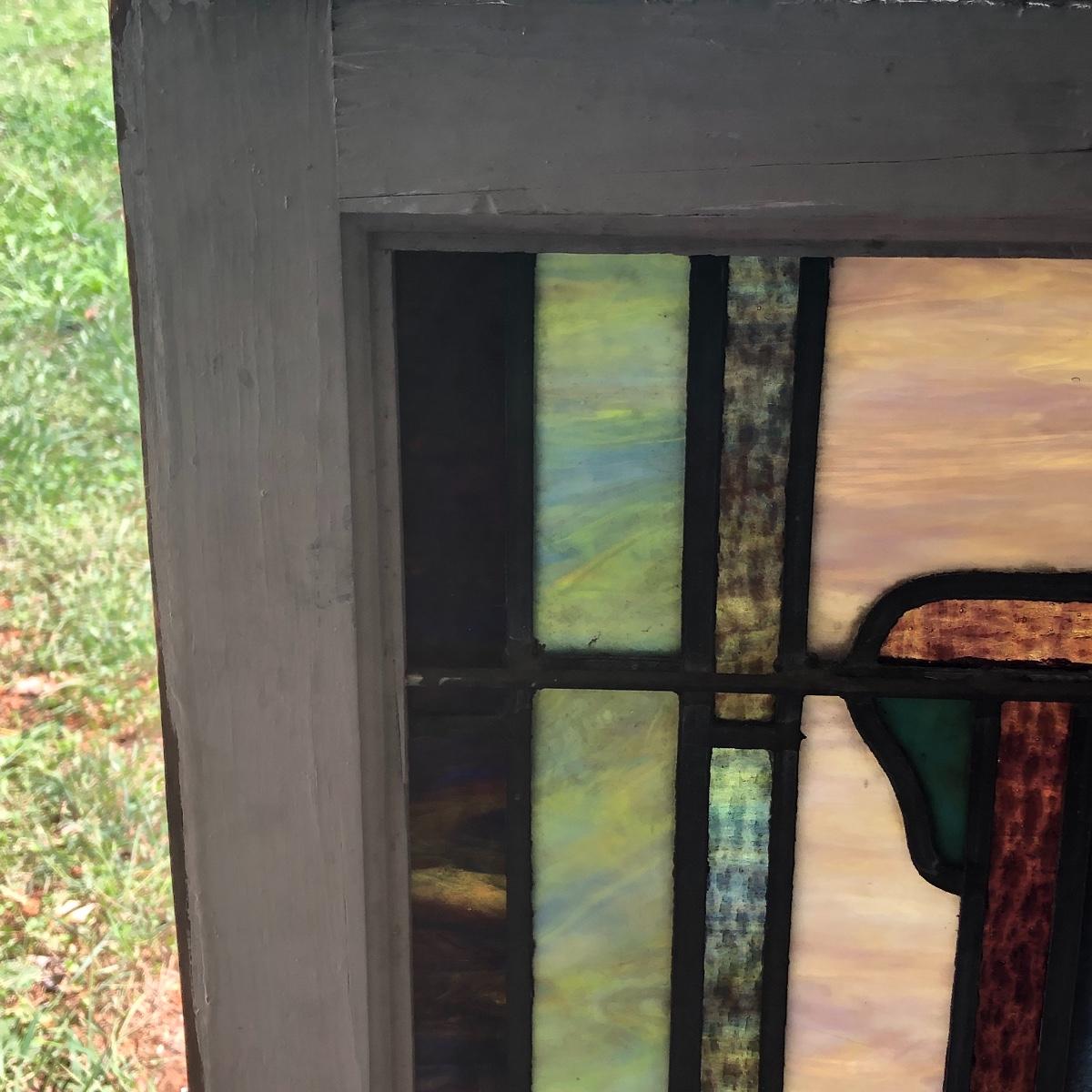 Lot 2 of 10, this stained glass has the Lamb of God. Some of the glazing is missing but otherwise it’s in good condition.
