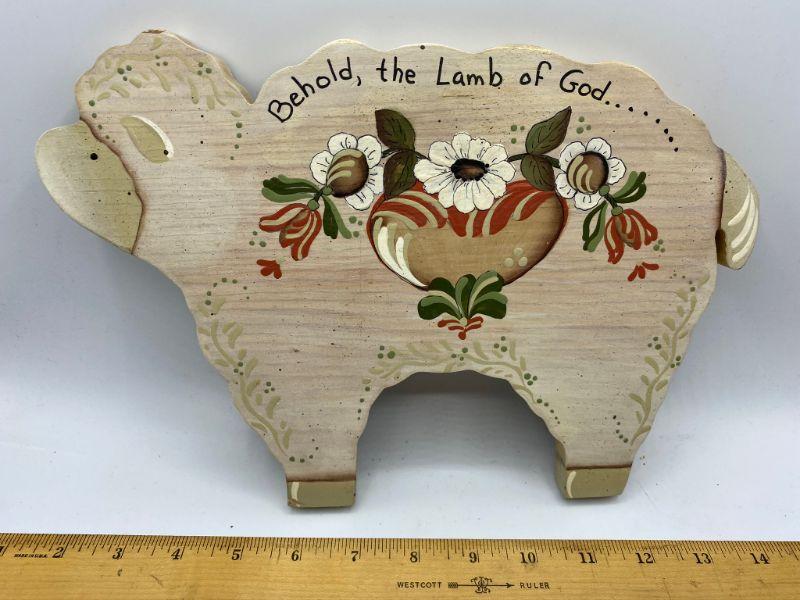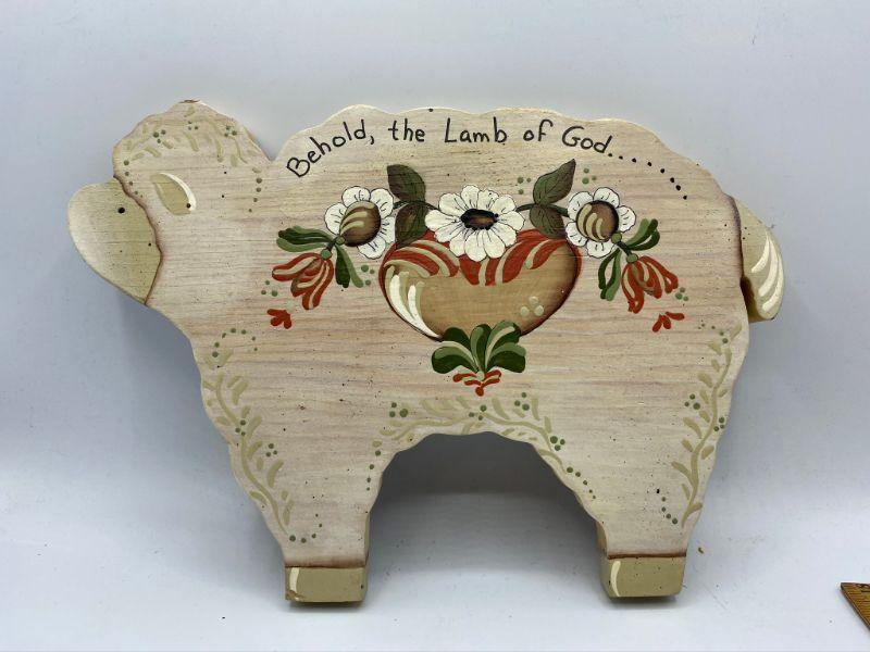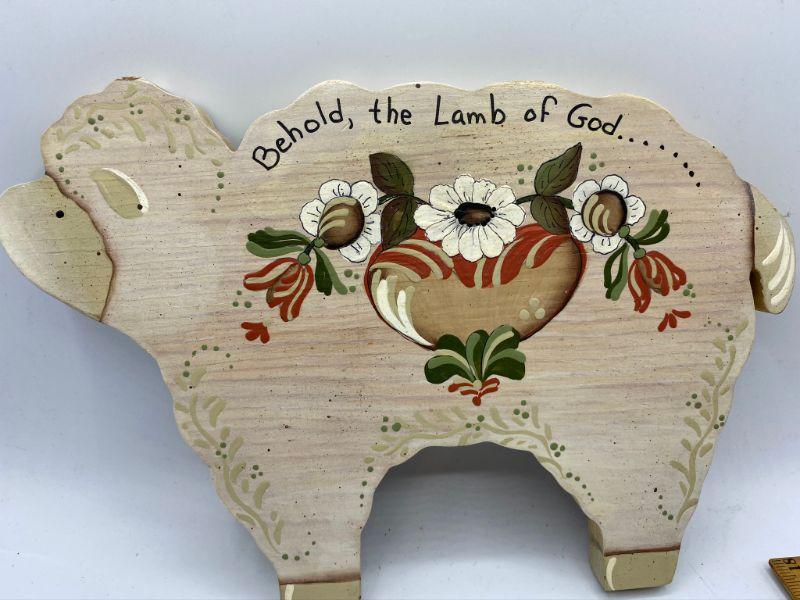 Cute hand painted Lamb of God decor. Was given as a gift per the notes on back. Small ding in the front foot.