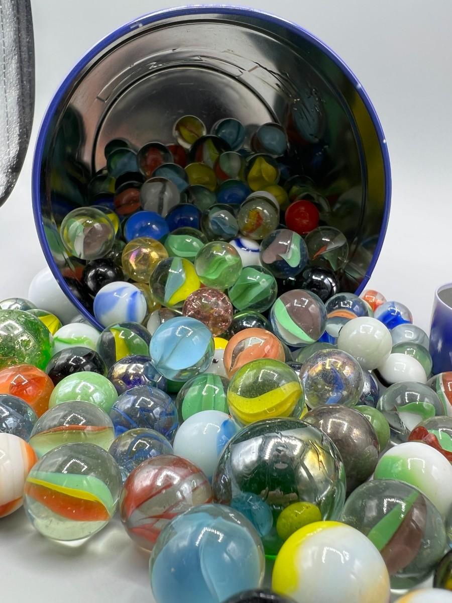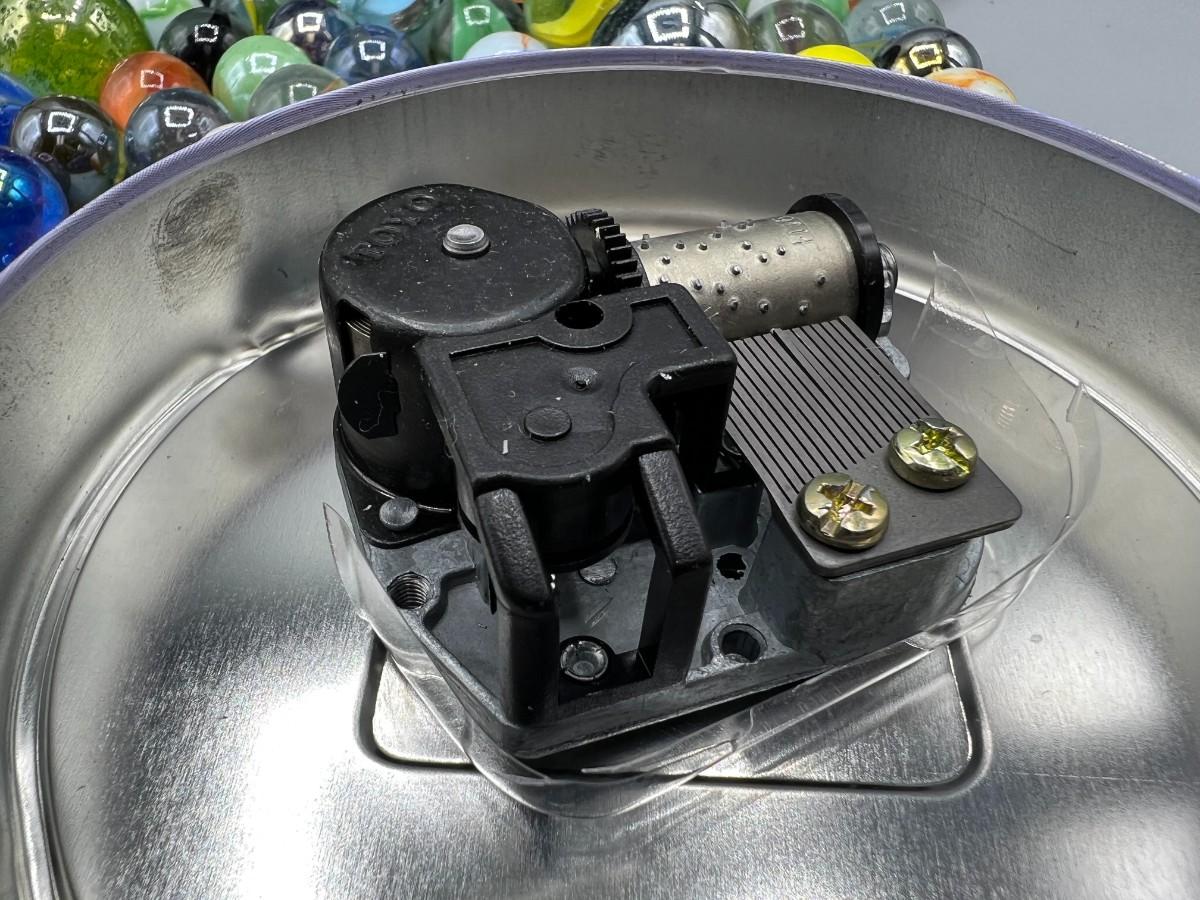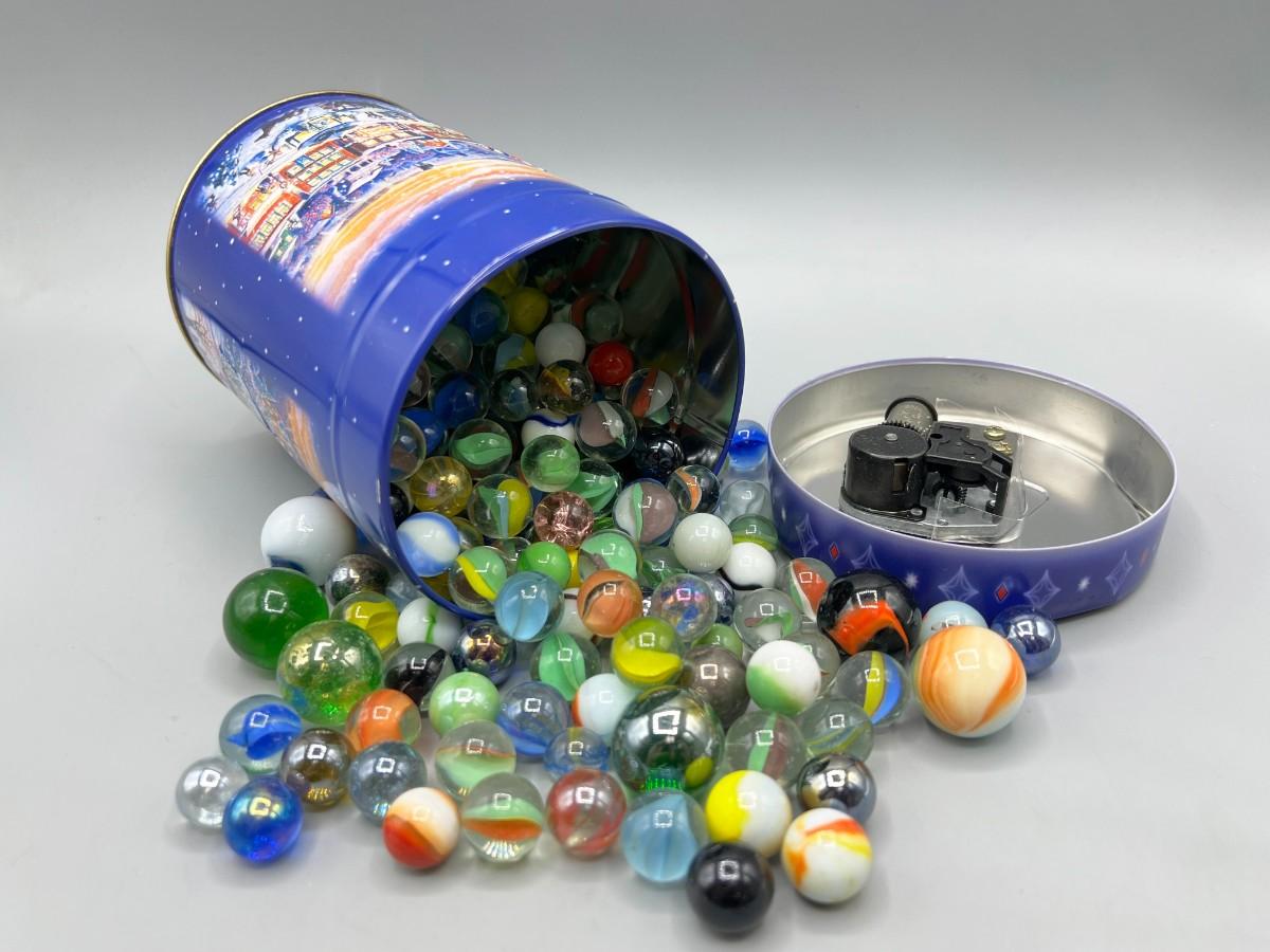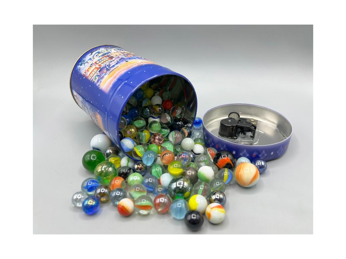Lambertz Music Box Tin Can Filled with Colorful Marbles