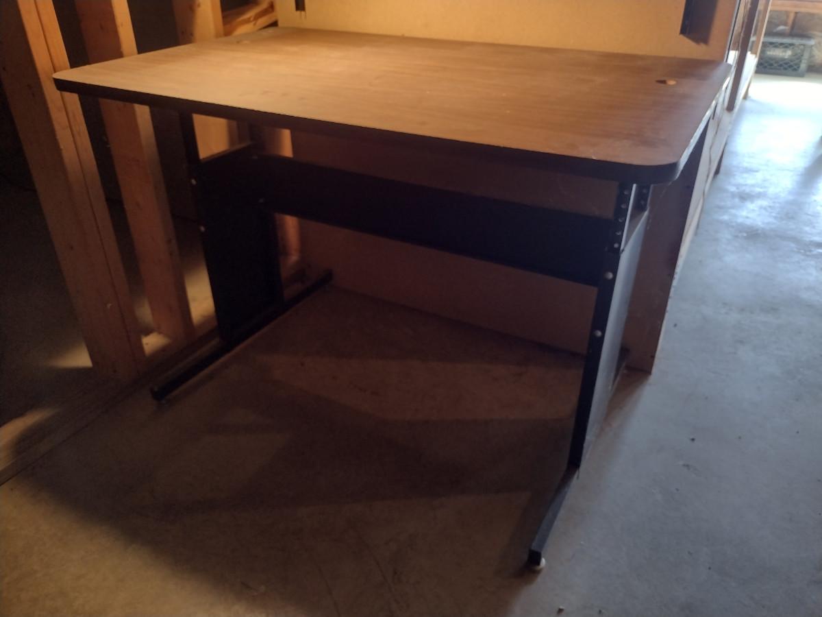 Laminate Top Office Table. Item is downstairs and will have to be brought to main floor. Please bring assistance to safely remove.