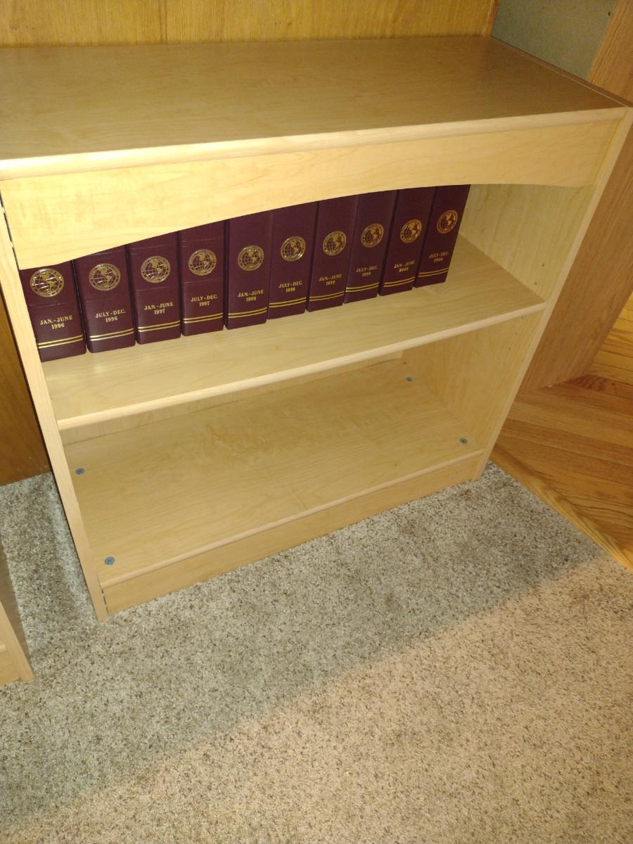 Laminate Wood Finish Short Bookshelf- Approx 29 1/2" x 12" x 28 3/4" (Choice B)