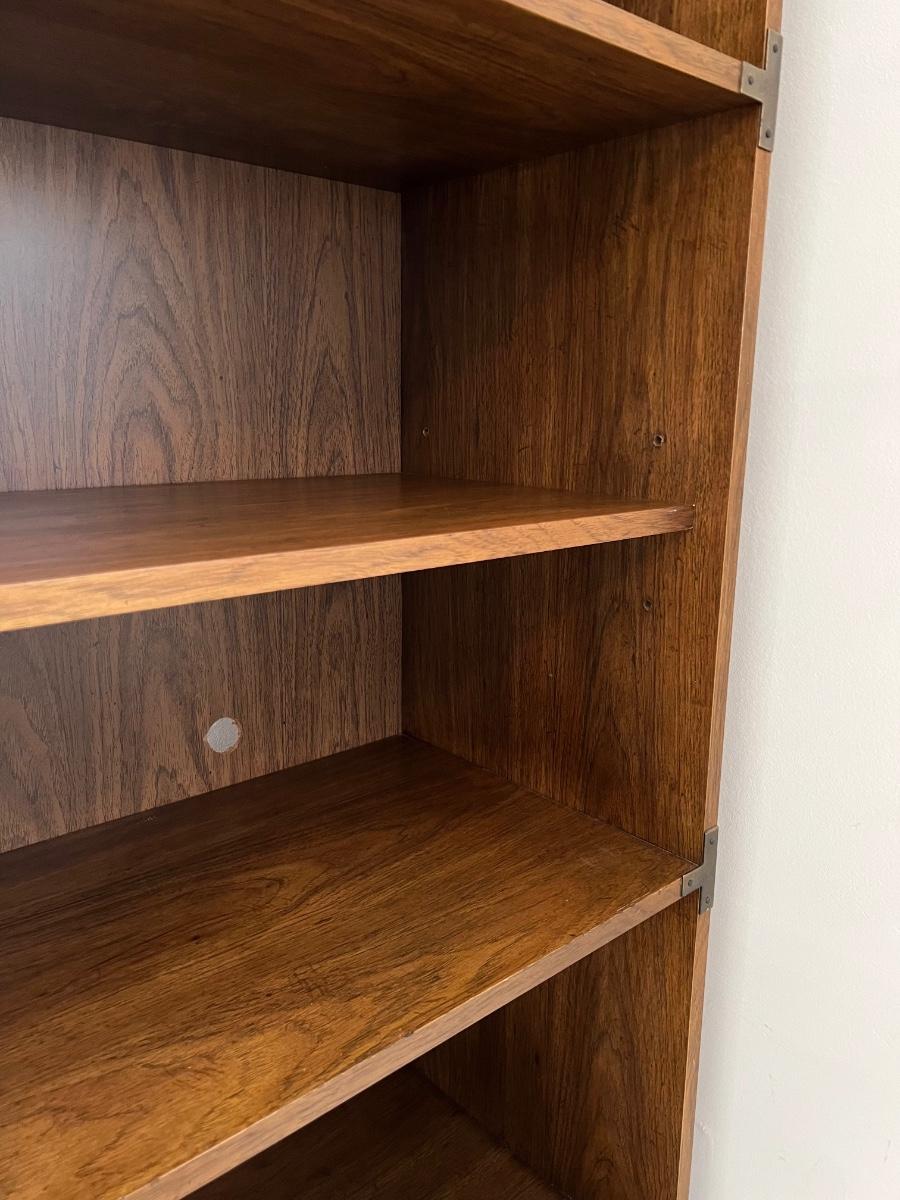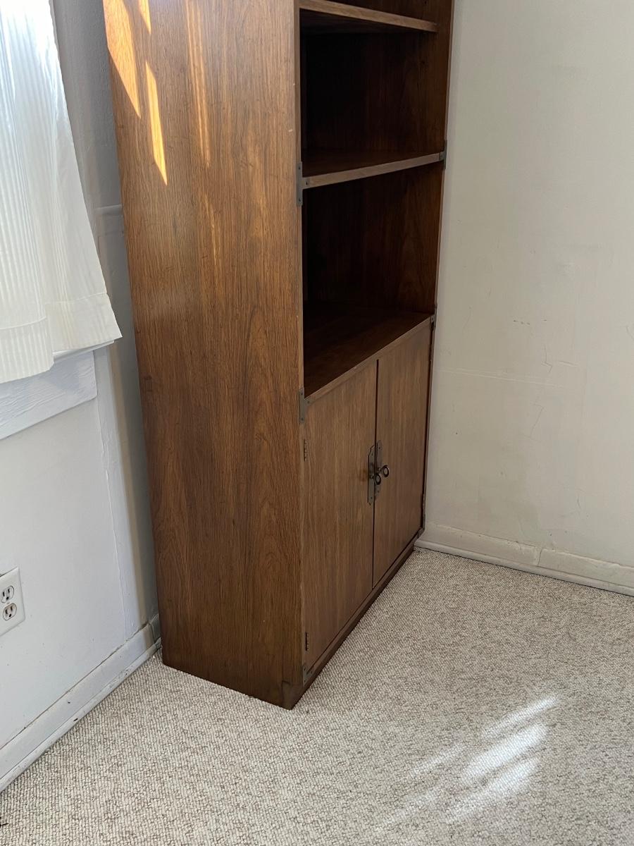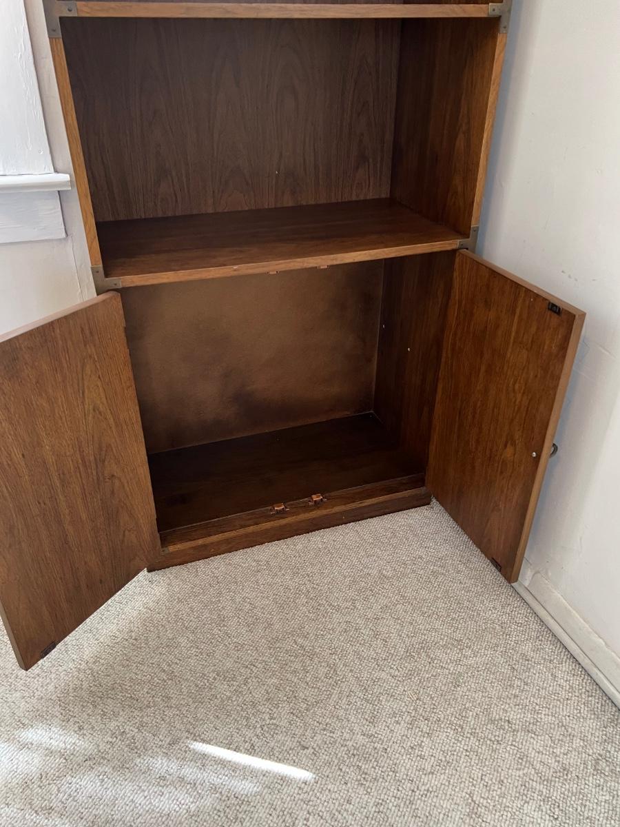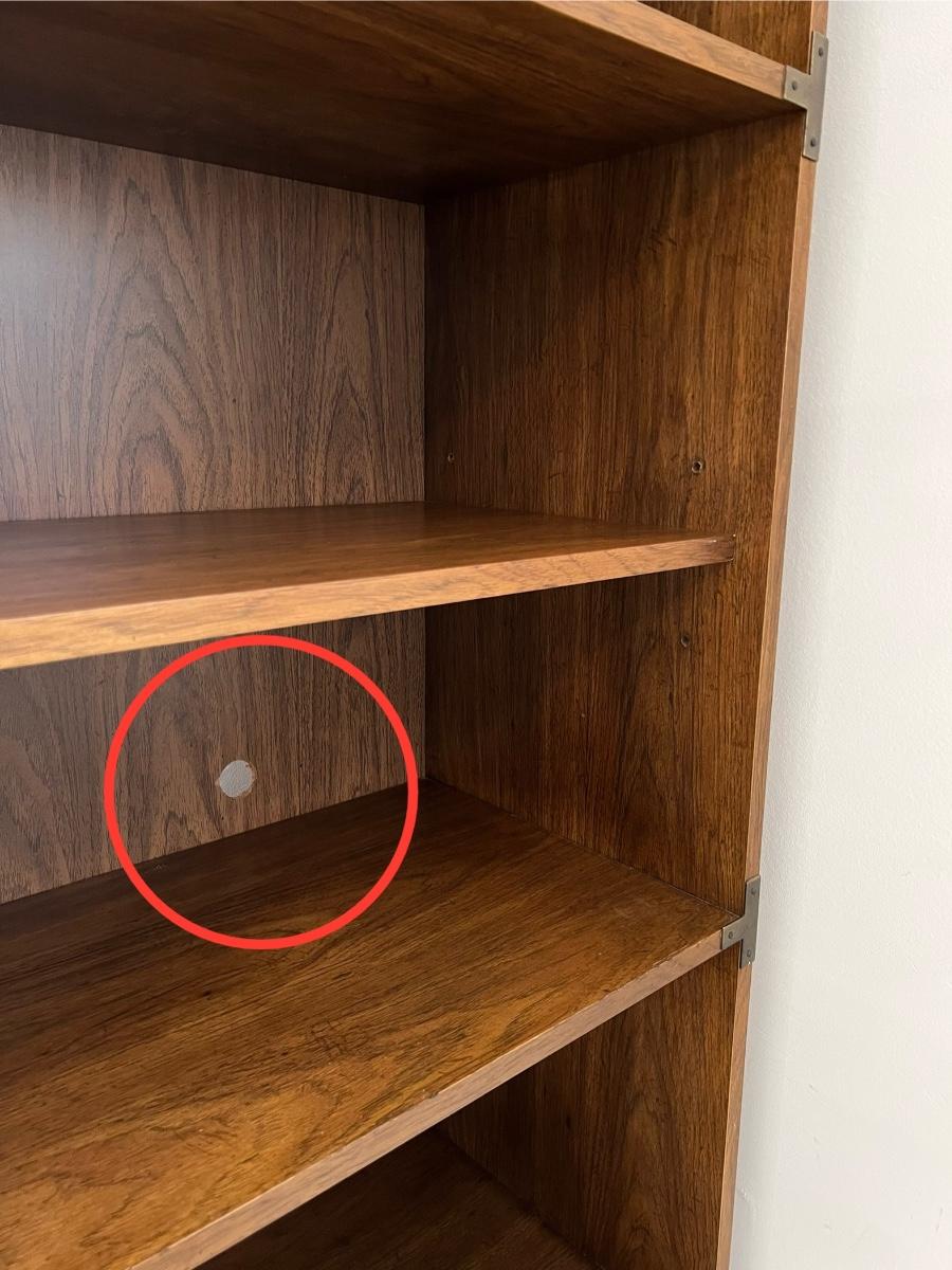 No brand ~ only 1 self is adjustable ~ No shelf for cabinet, but 1 can be added with pegs ~ 1 small 1.5” hole was made in back panel, see photos ~ 78” H x 30” W x 15.25” D