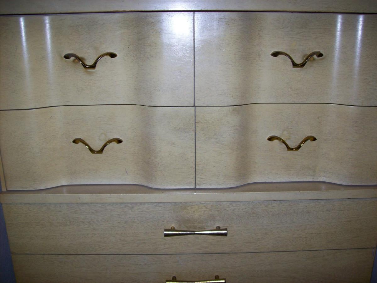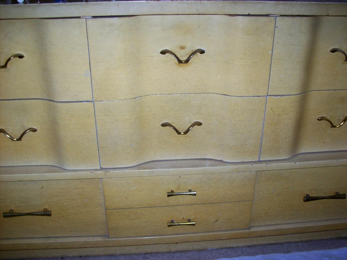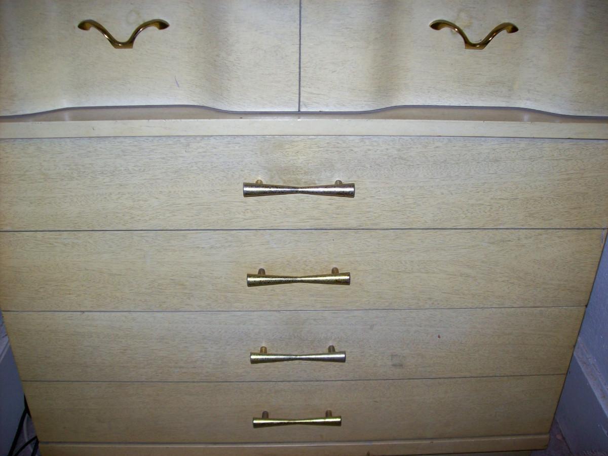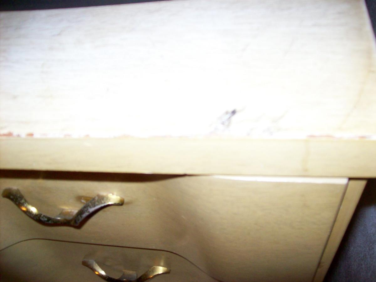 blonde chest of drawers, candle wax on top, some scratches on exterior, solid wood, interior is in excellent clean condition, furniture like this at an affordable price