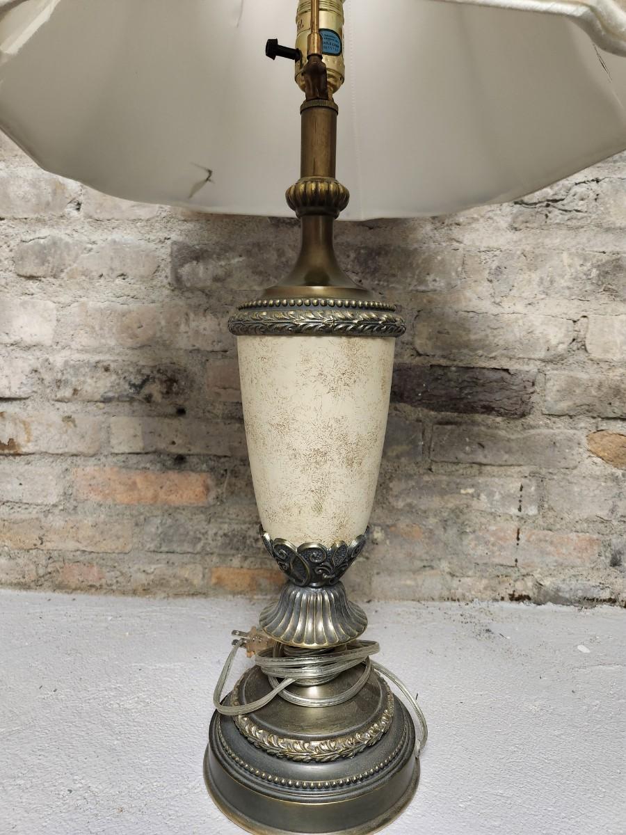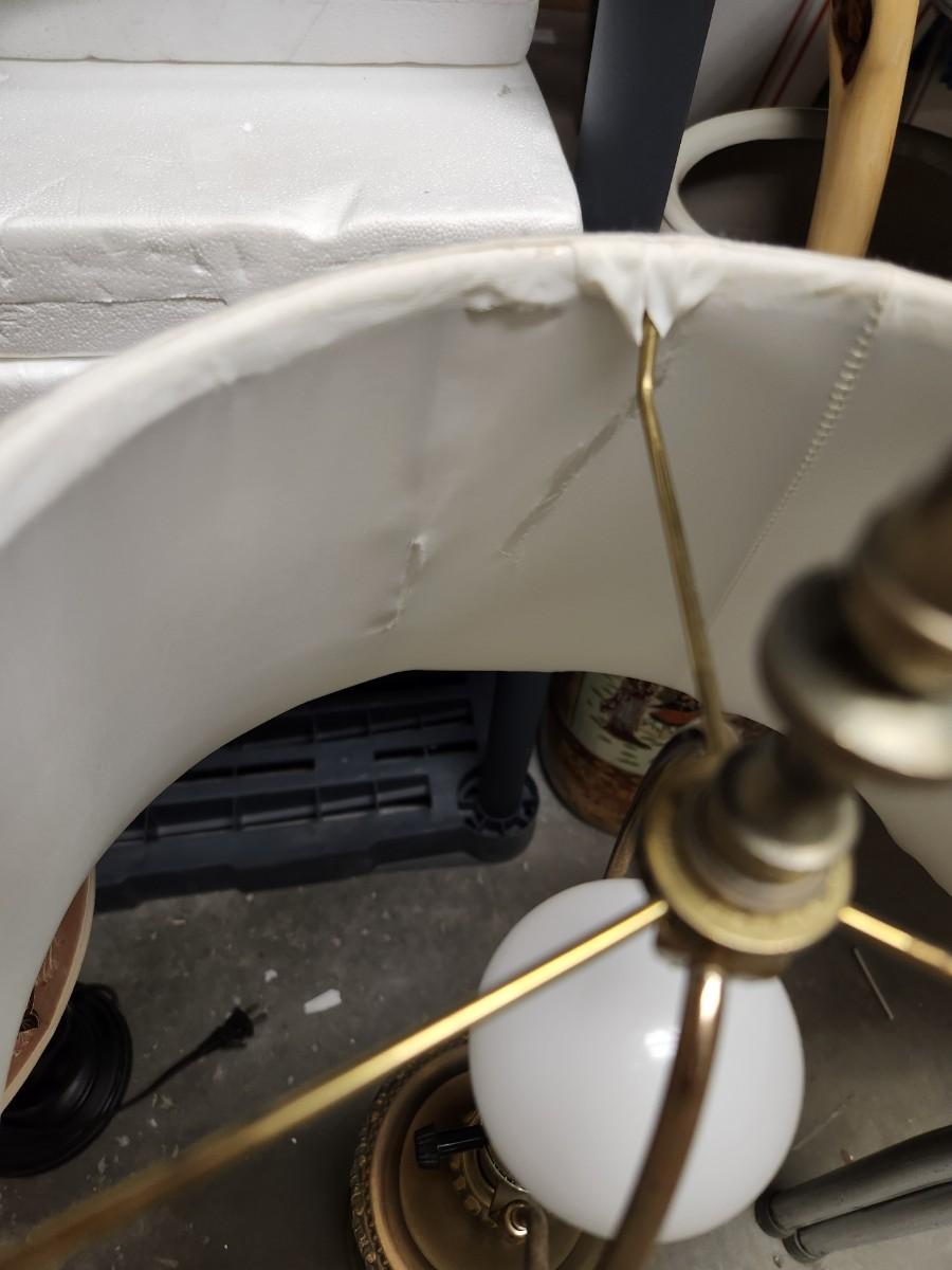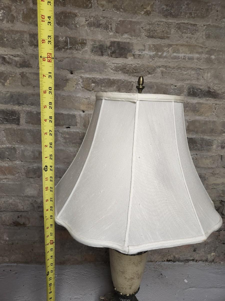 Very heavy lamp. Brass and ceramic. Shade has seen better days