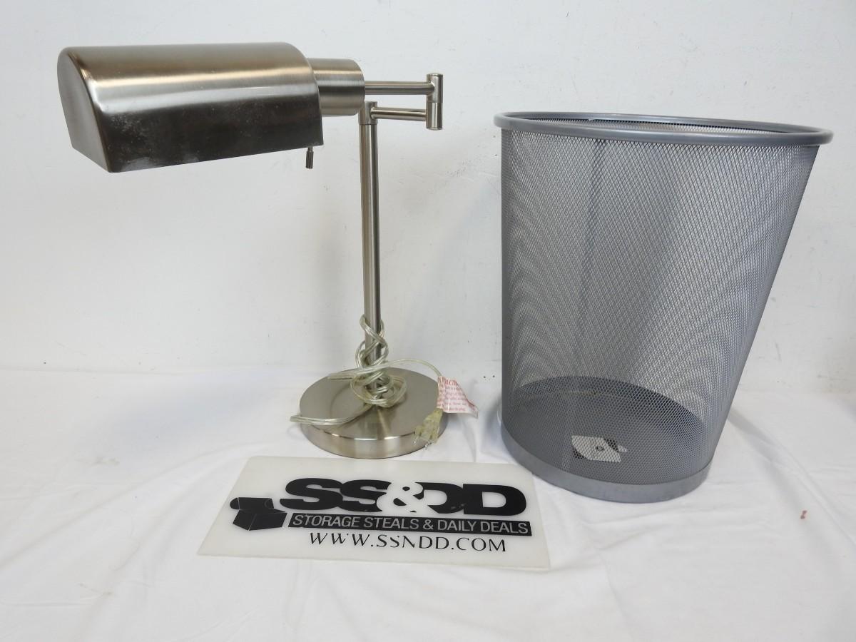 Lamp 14 1/2in, Seville Mesh Wastebasket, 14in, Silver Tone, Lamp WORKS