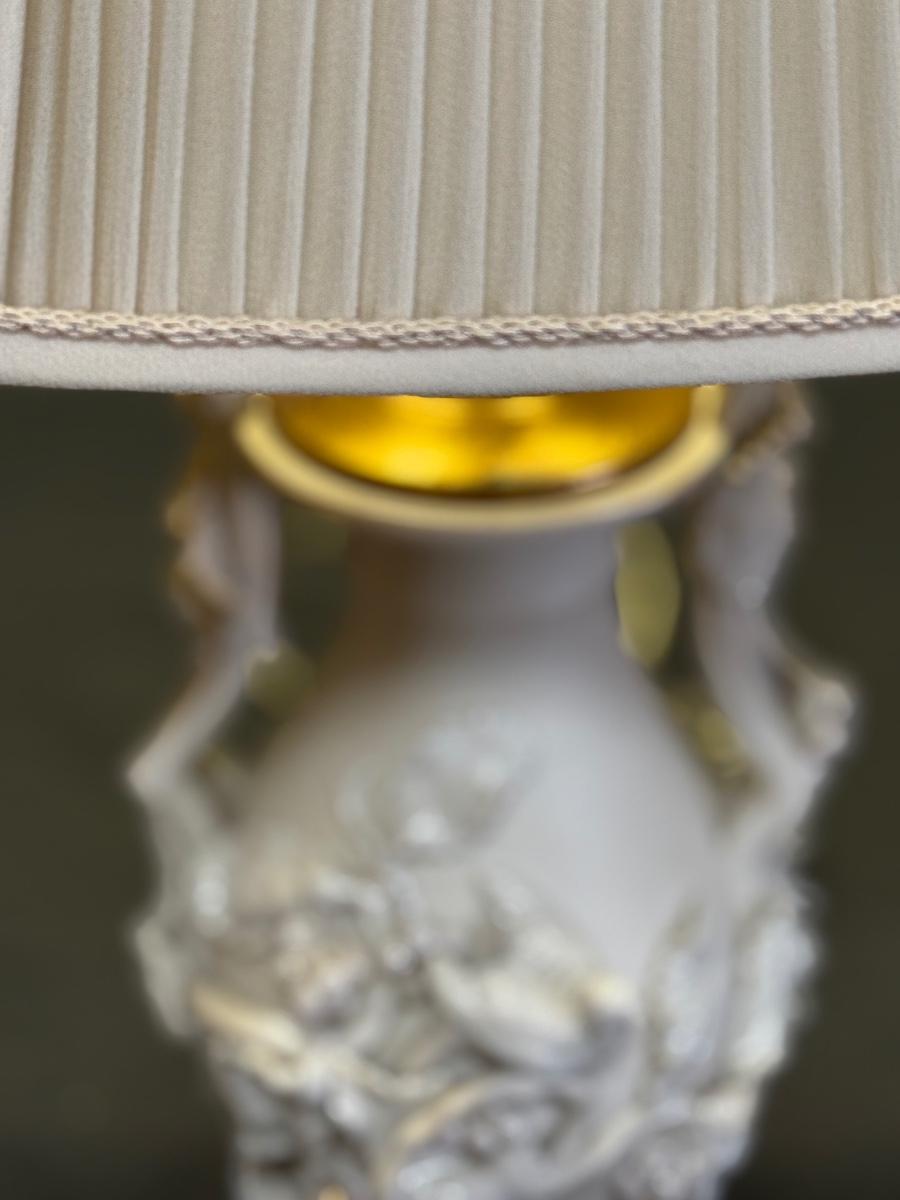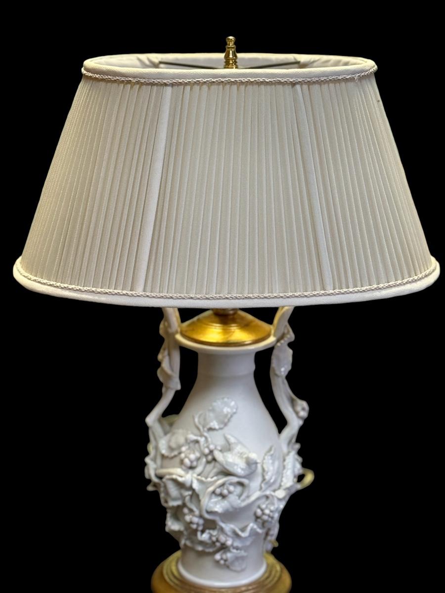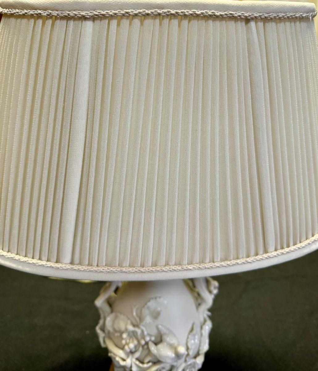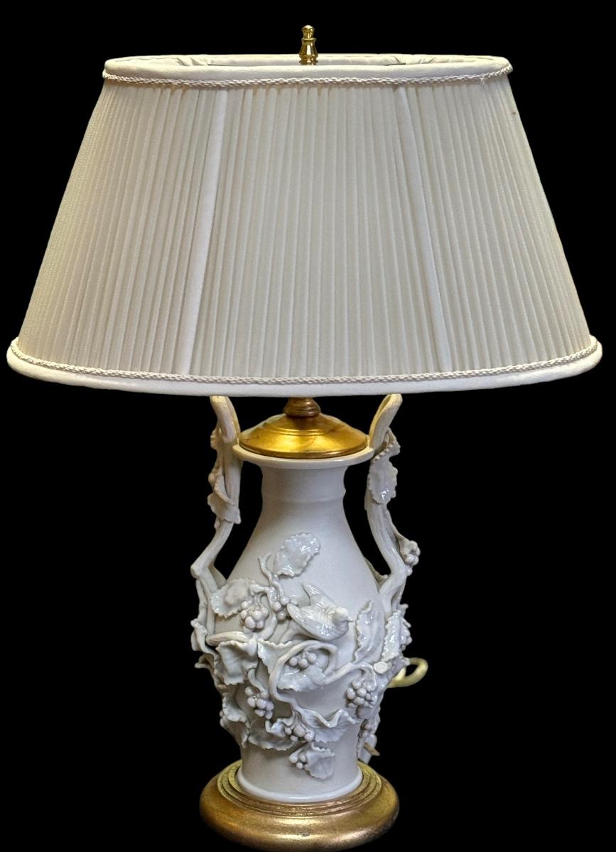 Vintage Ceramic Lamp with Fabulous applied decoration in the round.