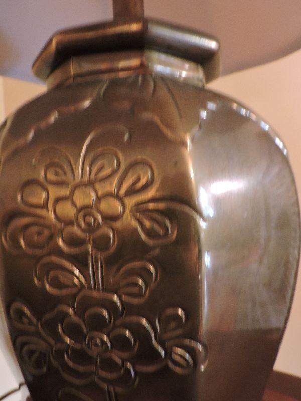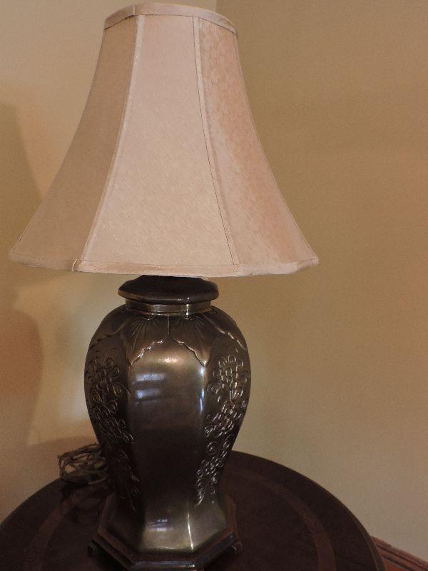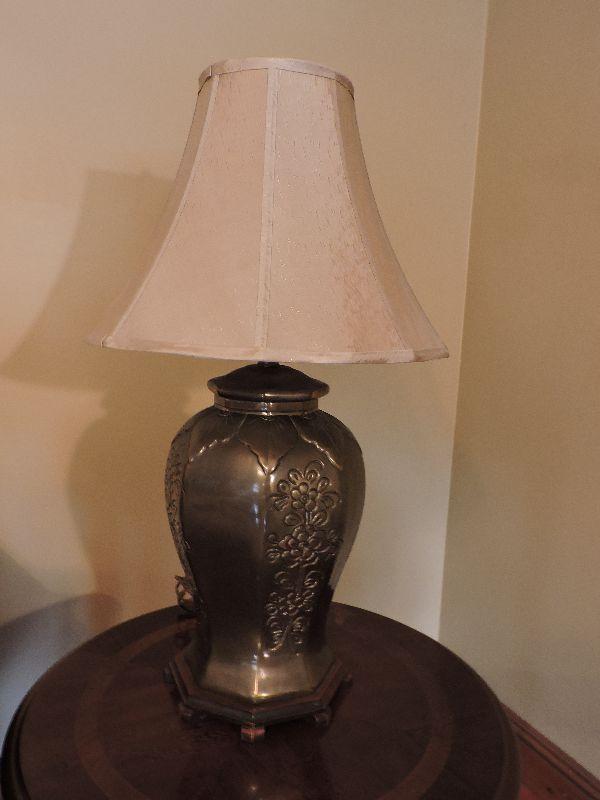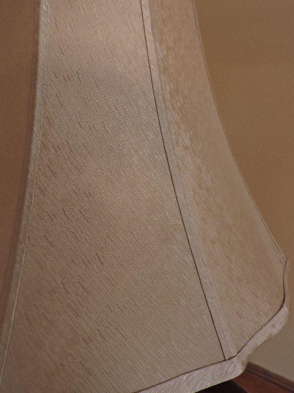 Nice lamp with shade, needs wire repair. Untested. Please read Terms and Conditions before placing a bid. Pick up is Friday, October 25th between 4 and 7, and Saturday, October 26th between 9 and 1. Props included in photos are not included in listing. All measurements are approximate. Comes from home with cats.