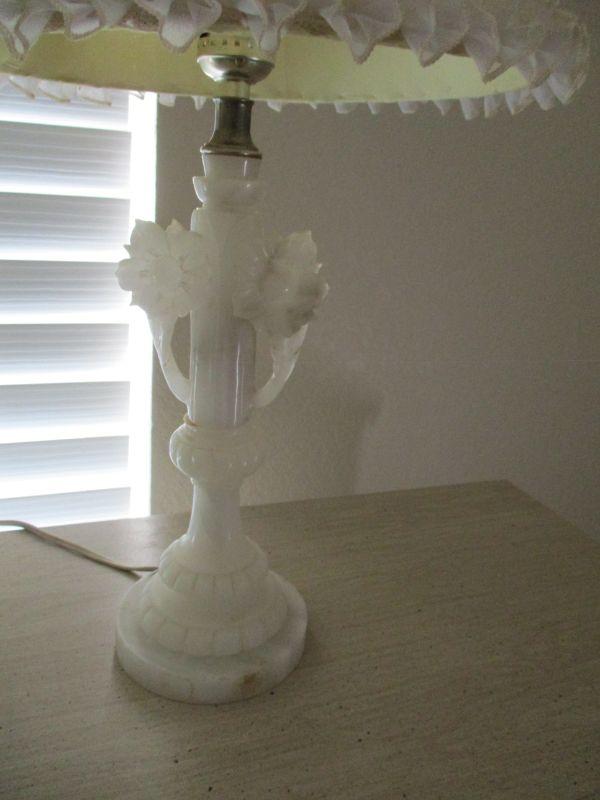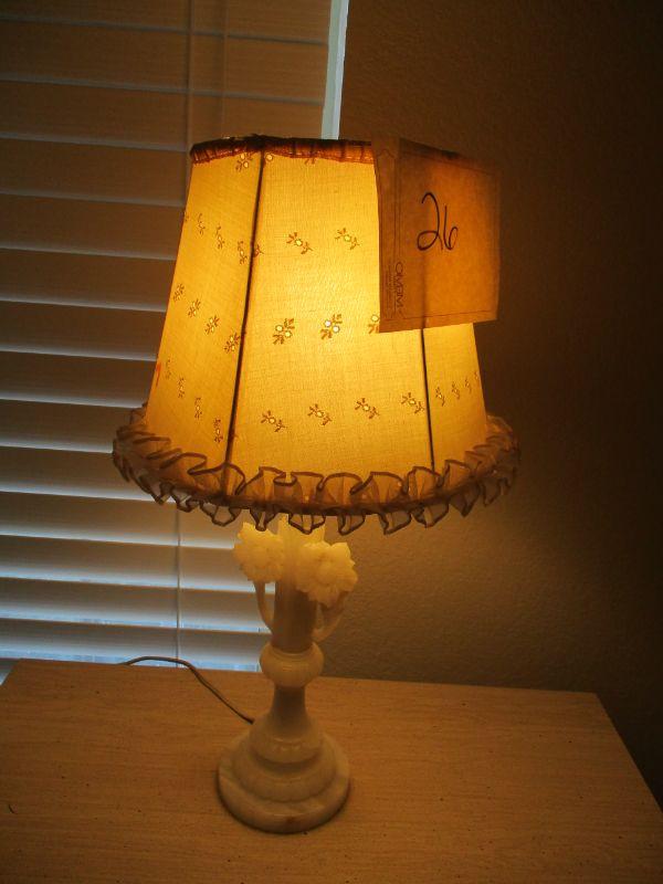Small reading lamp. Glass base w/faux marble appearance. Approx 19 1/2 in tall.