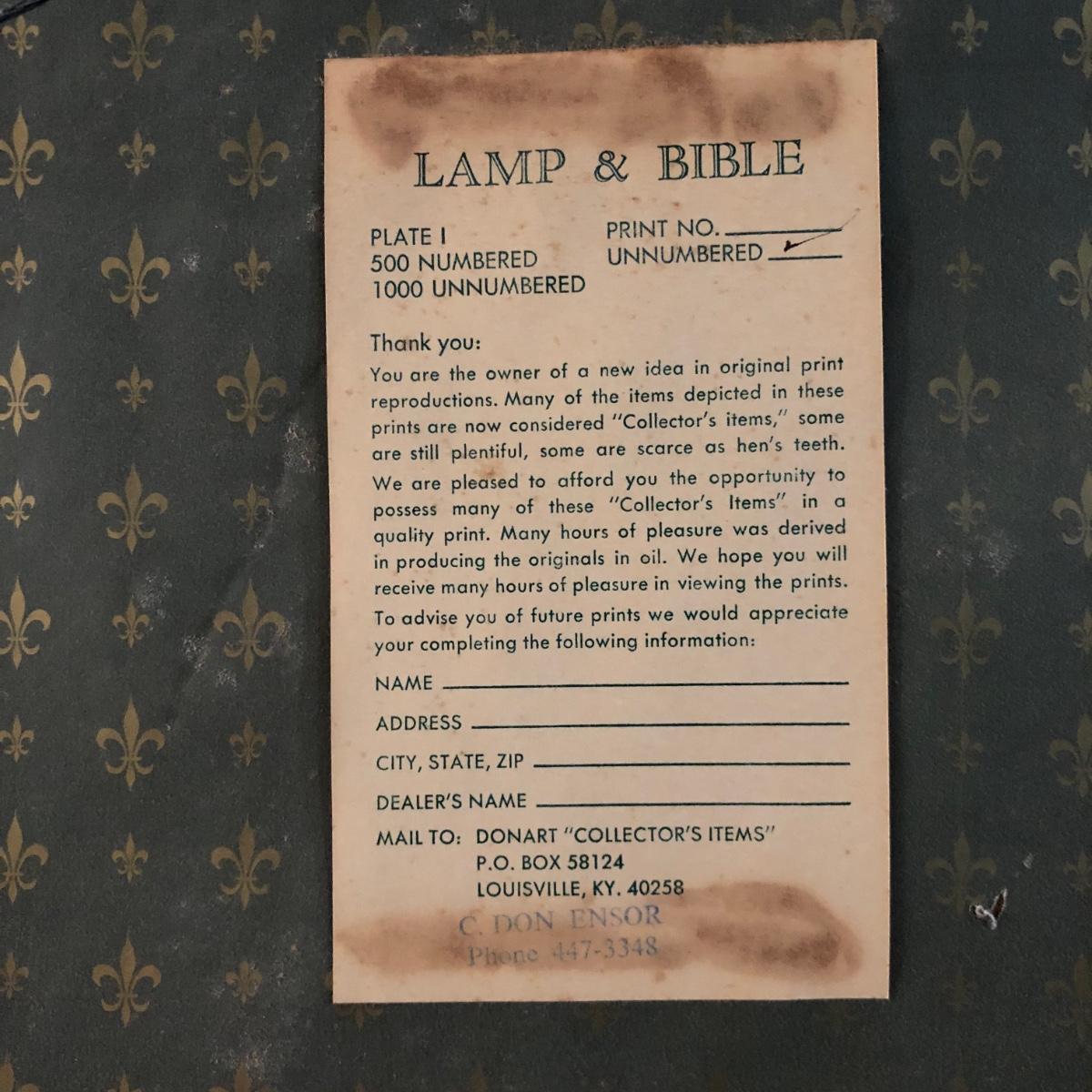 “Lamp and Bible” Print of Oil Painting by C. Don Ensor in Wood Frame (DR-JF)