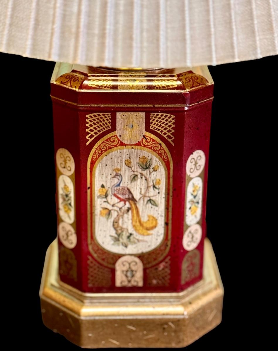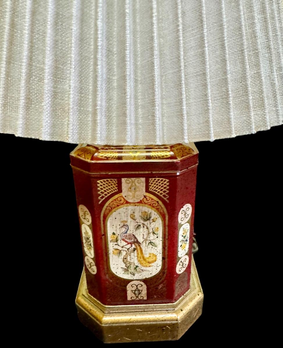Vintage Nicely Painted Tea Tin Lamp Base with Pleated Shade