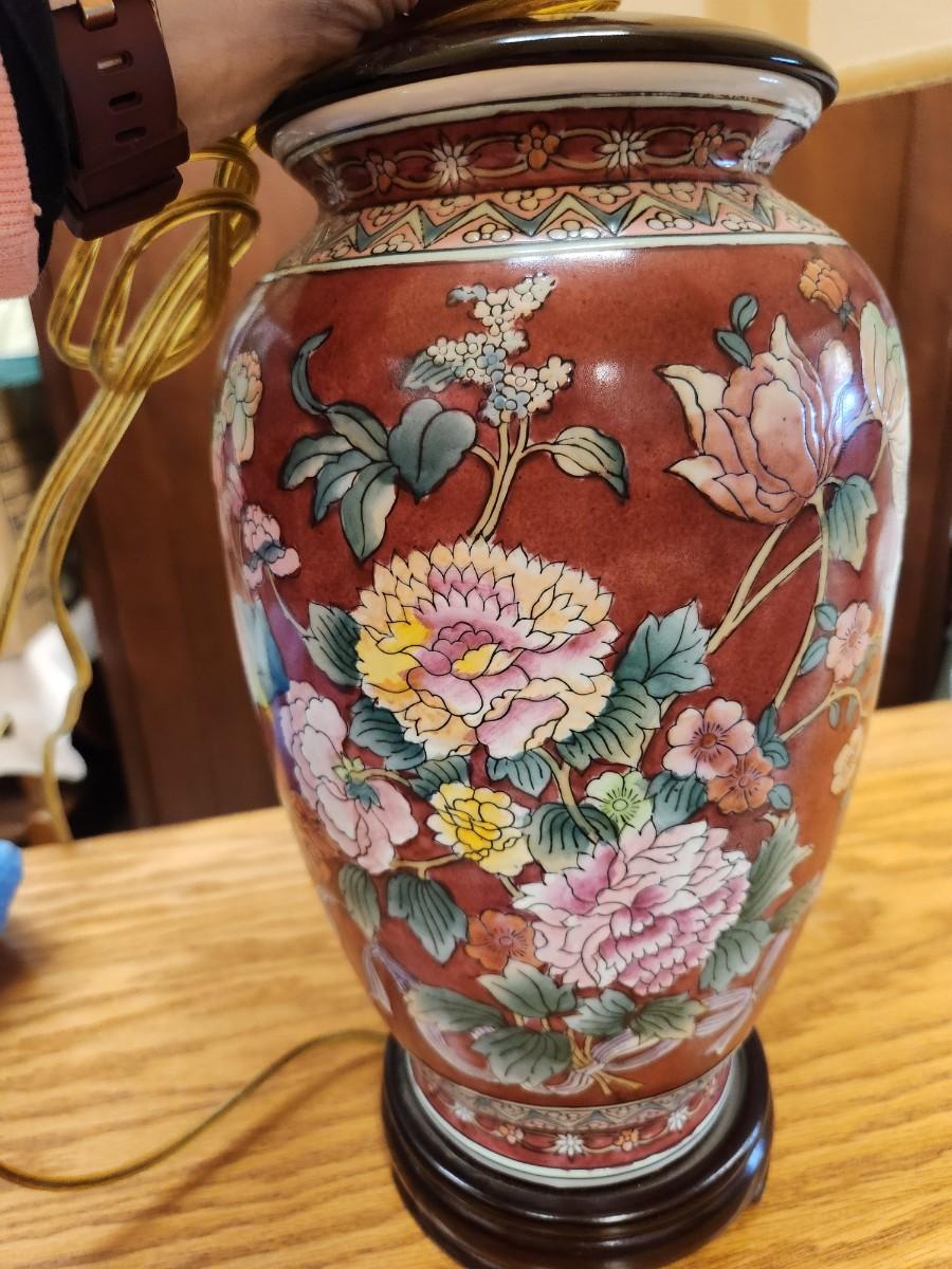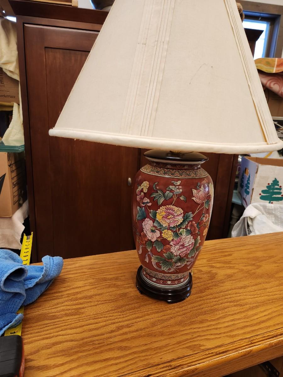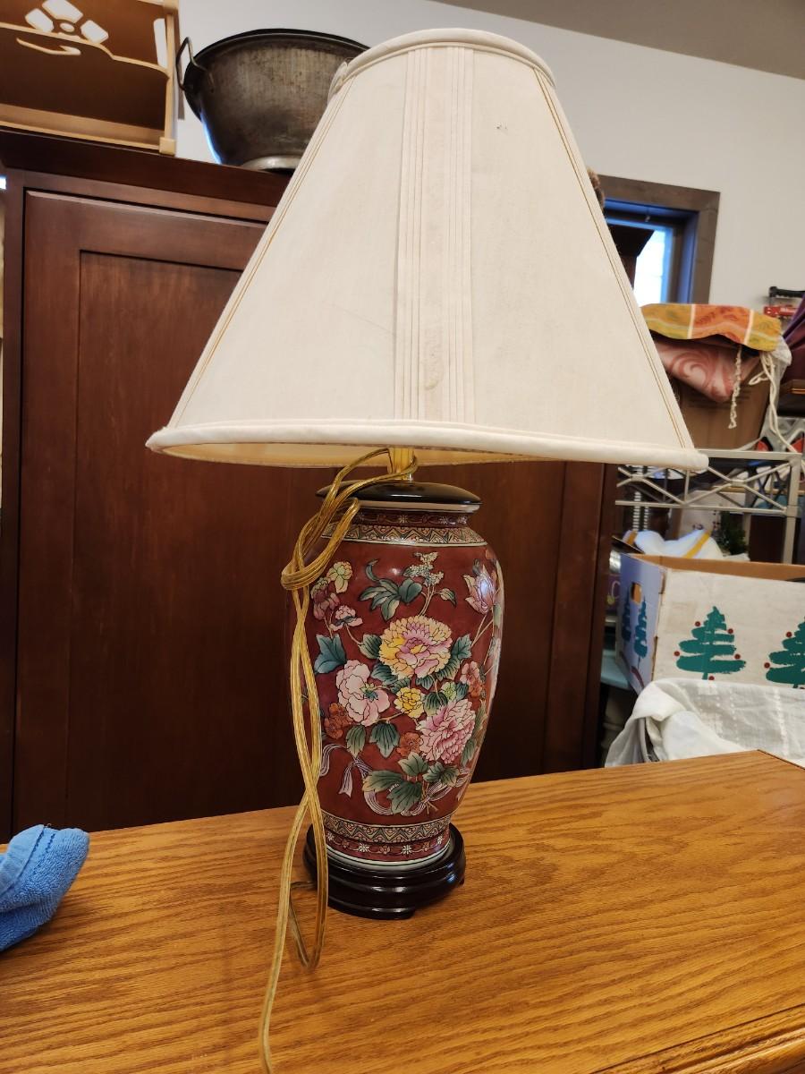 Oriental ceramic lamp and shade