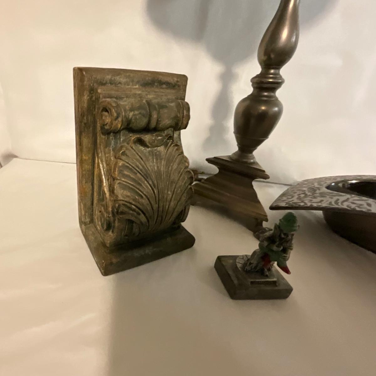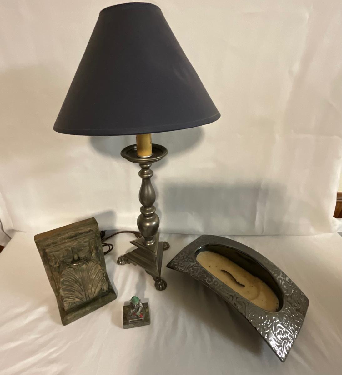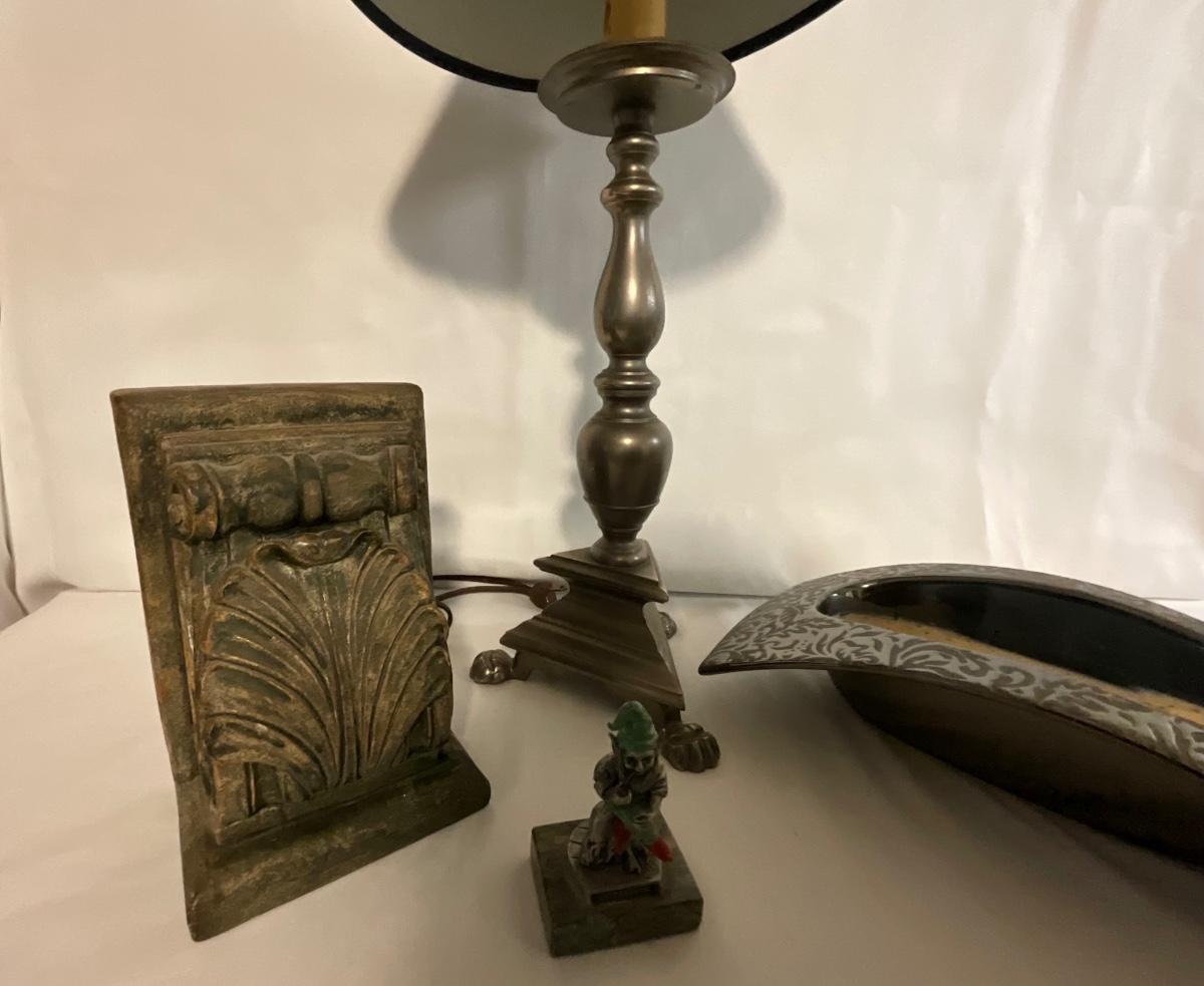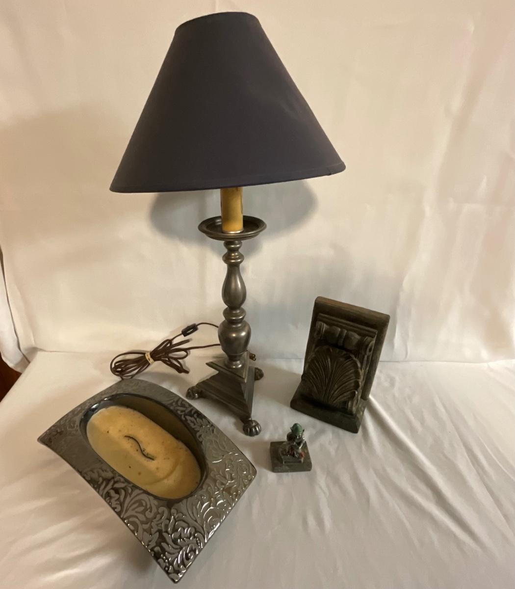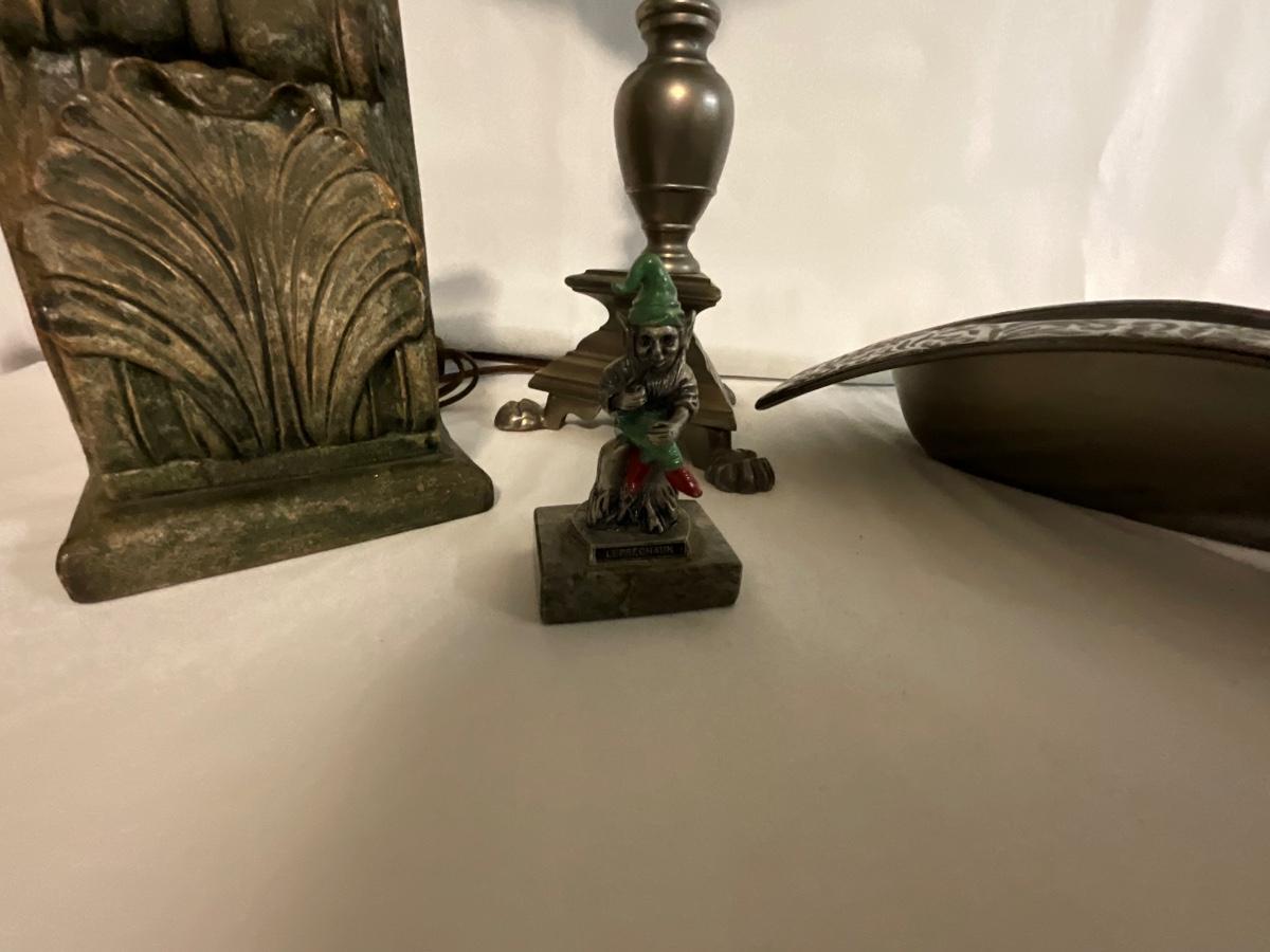 Lamp, Large Candle, Metal Leprechaun statue, book end