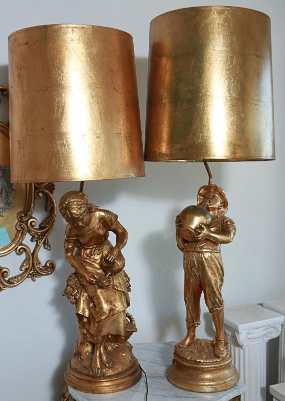 Lamp Lot - 2 lamps - Huge Gold Figural Table Lamps Neoclassical  Hollywood Regency YD# 22-0001
