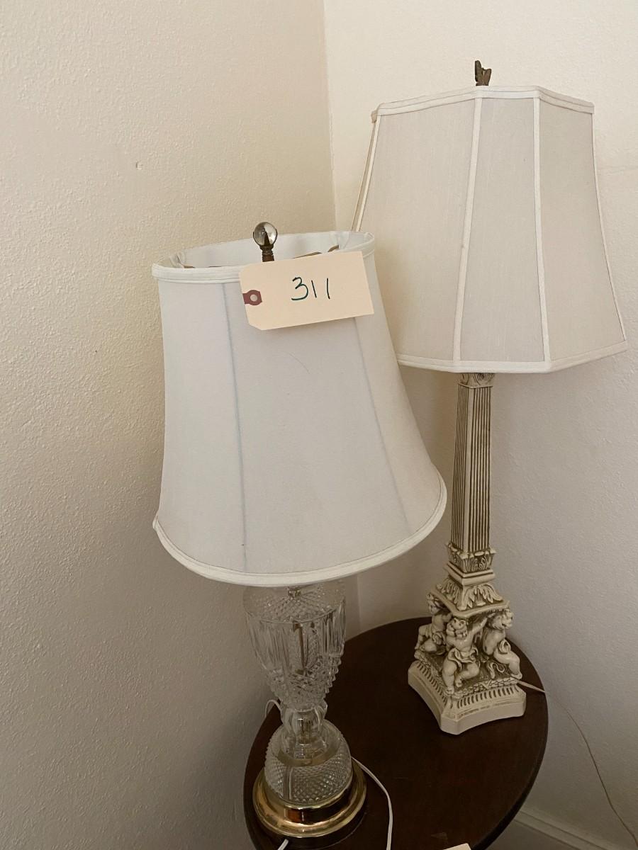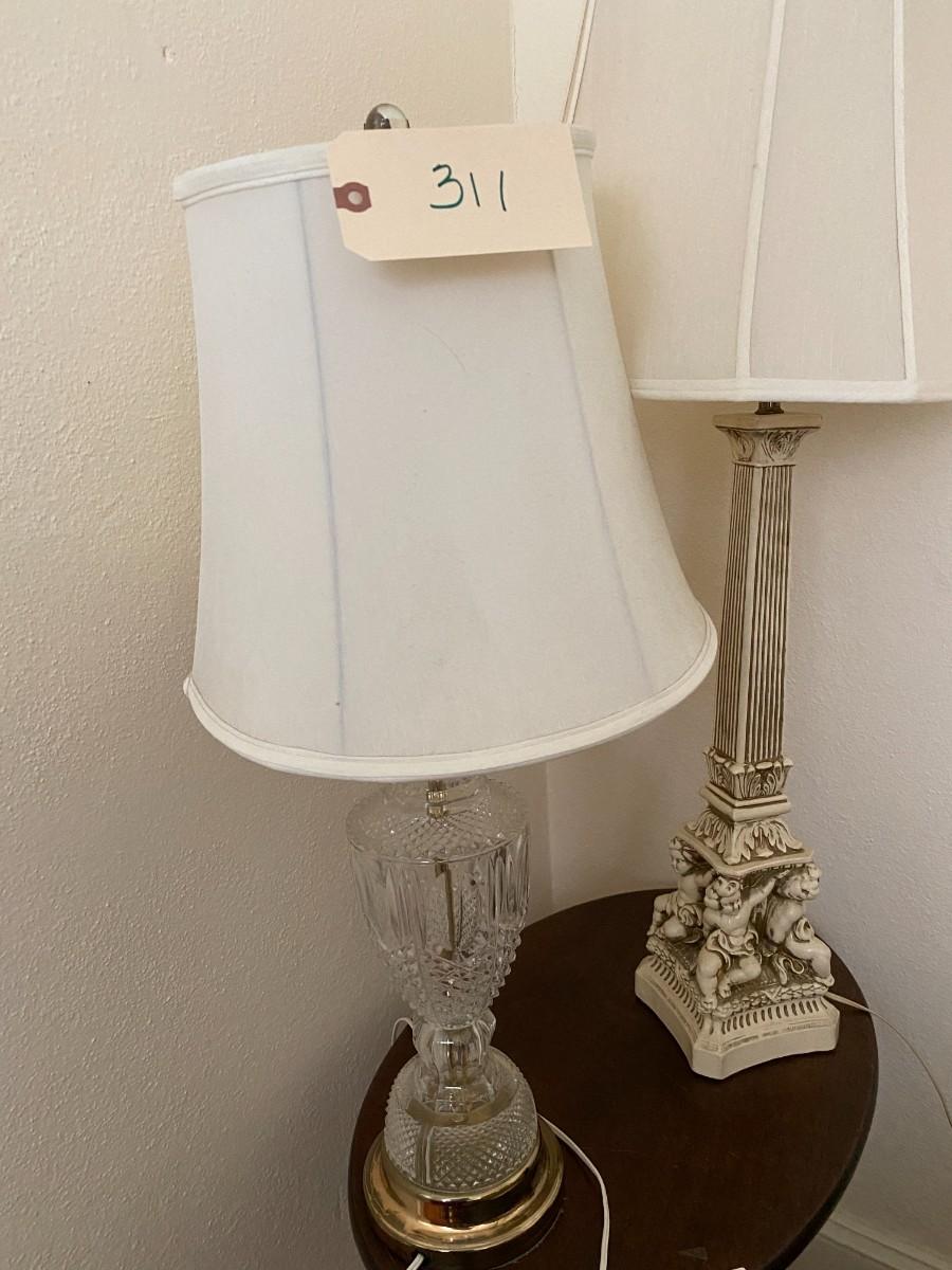 1 Crystal Lamp, 1 Vintage Cherub Lamp