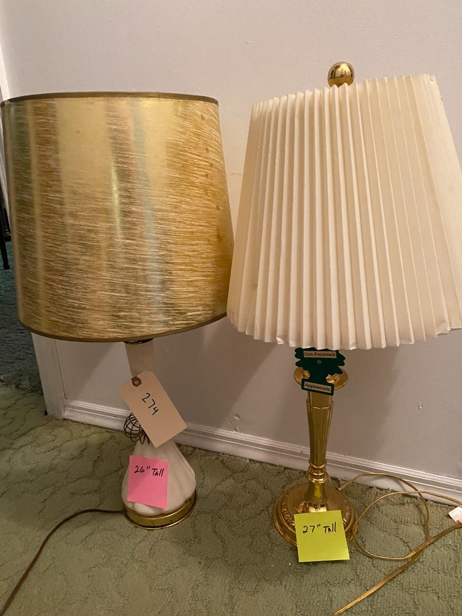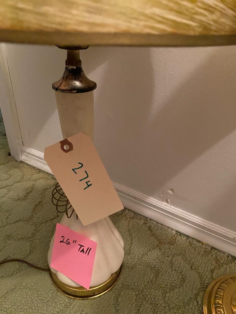 LOT 274 White Lamp 26 in Brass Lamp 27 in.